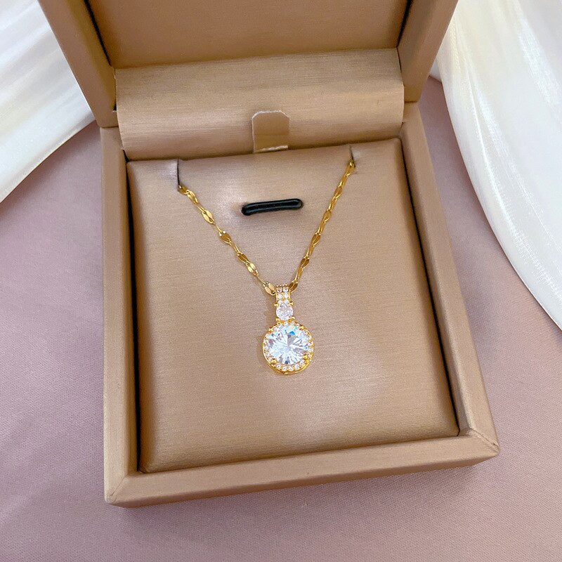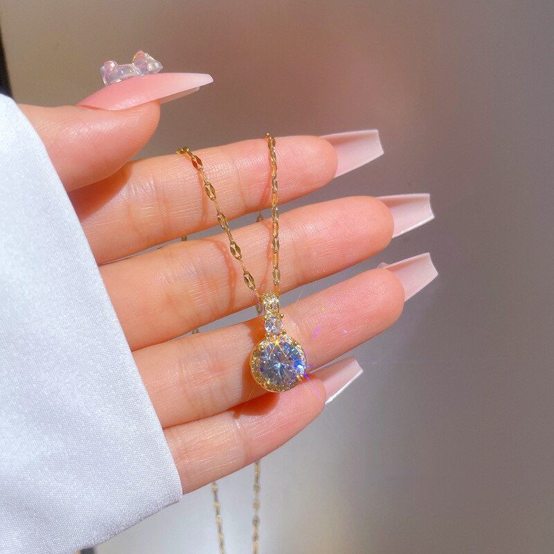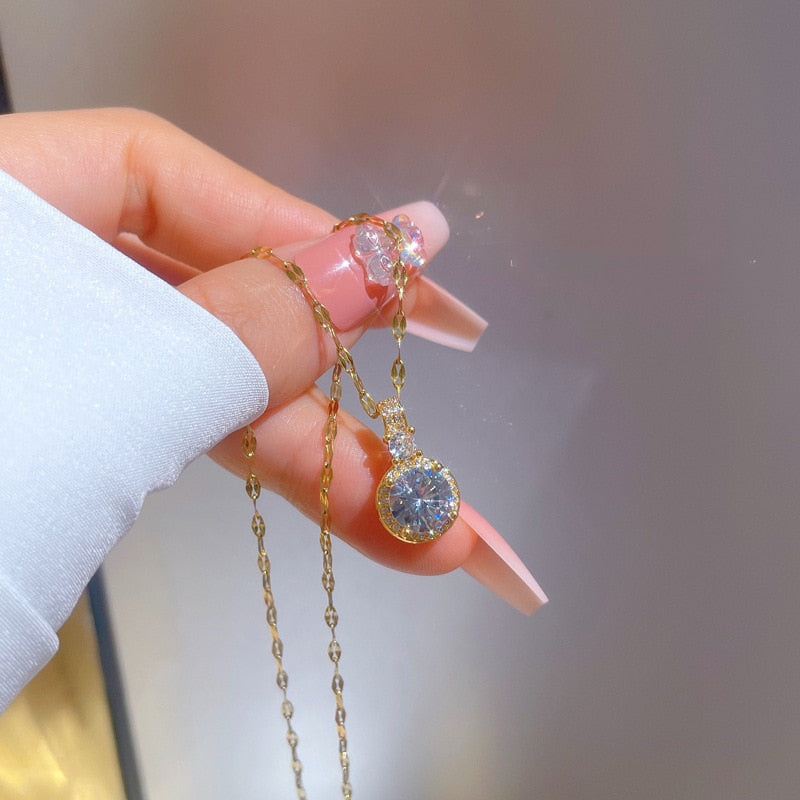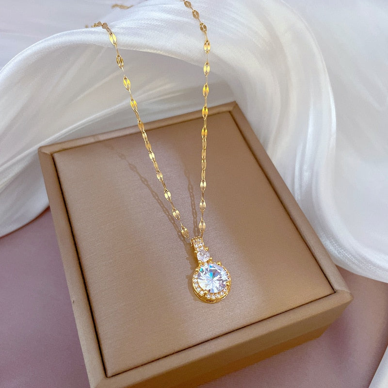 585 Gold Jewelry- Stainless Steel New Shiny Chain Zircon Waterdrop Pendant Necklaces Women CZ Crystal Lover Clavicle Choker Valentine Gift