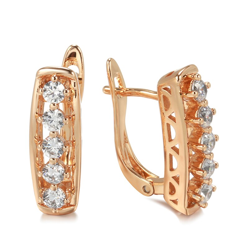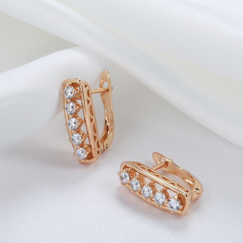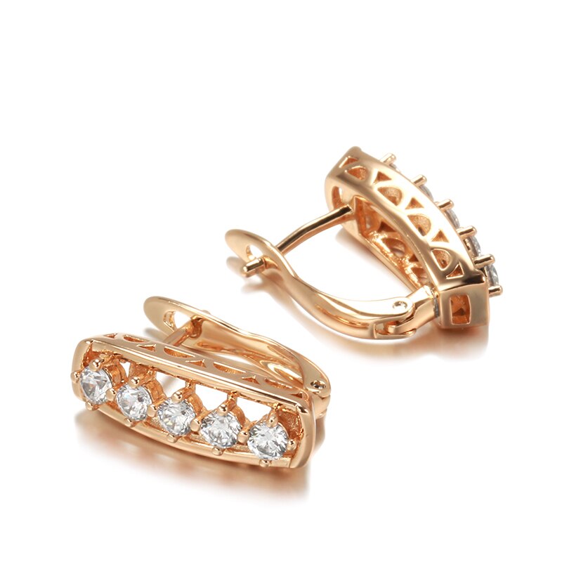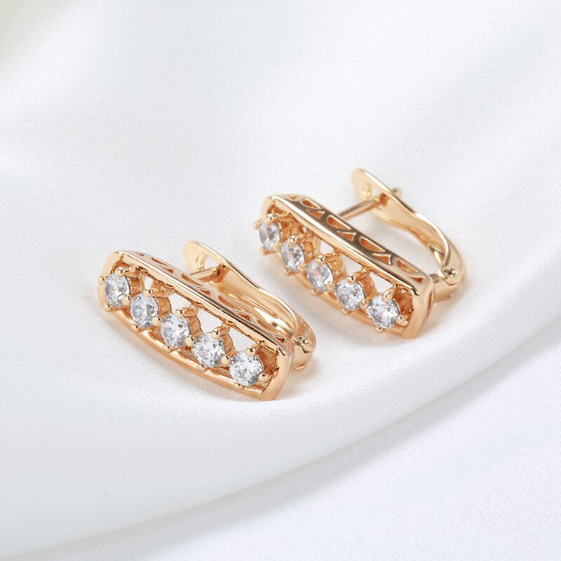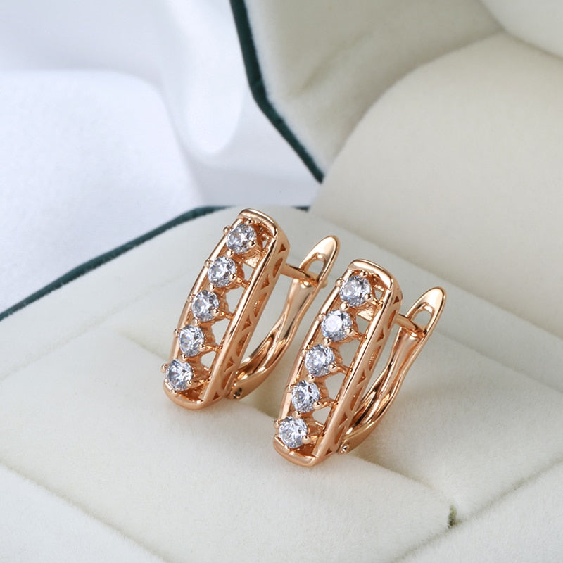 New Shiny Zircon Earrings Vintage 585 Rose Gold Hollow Simple Sense Geometric Earrings