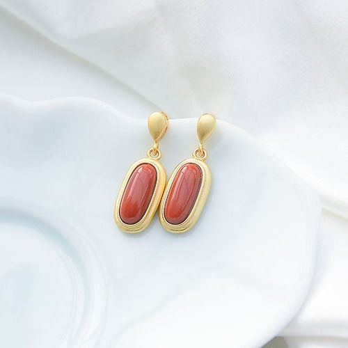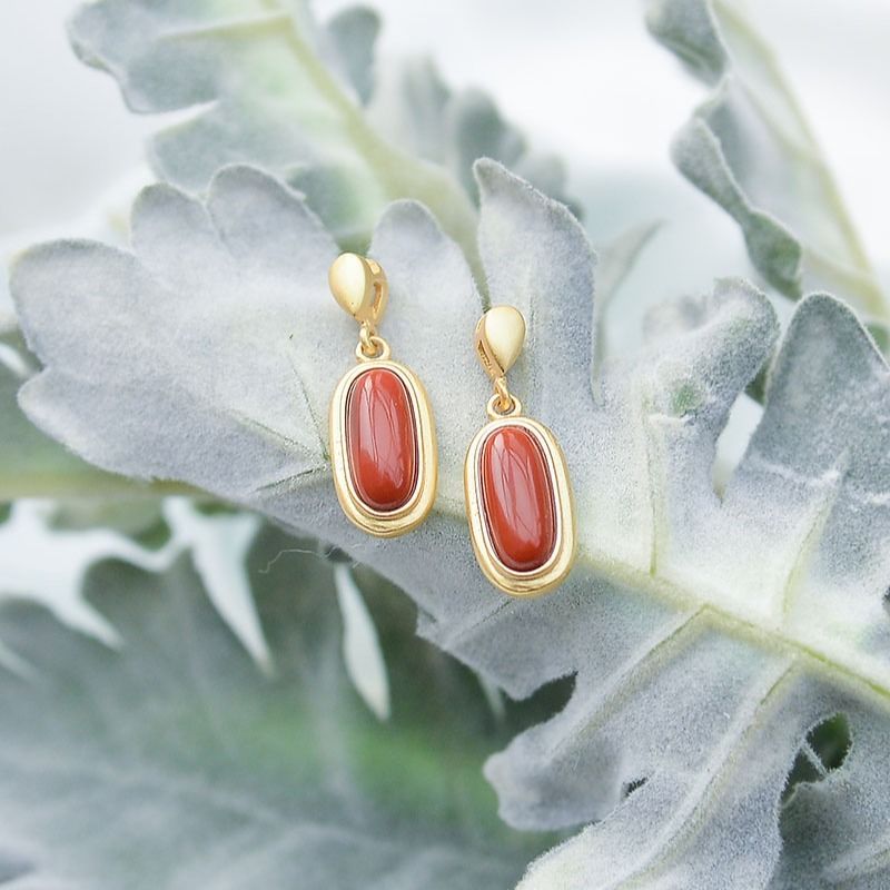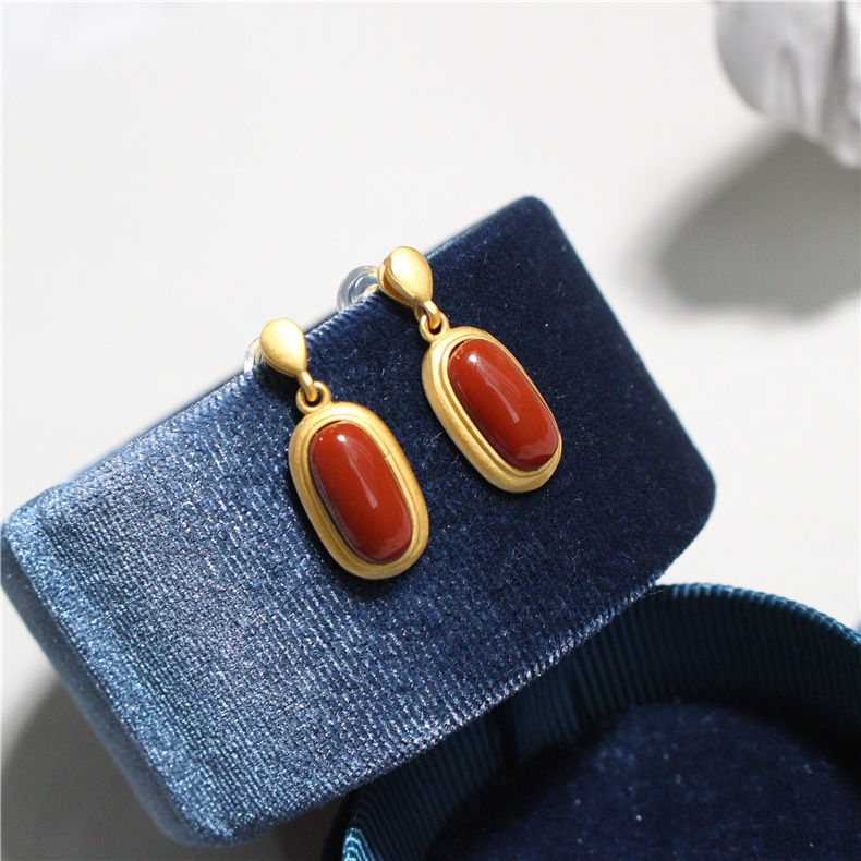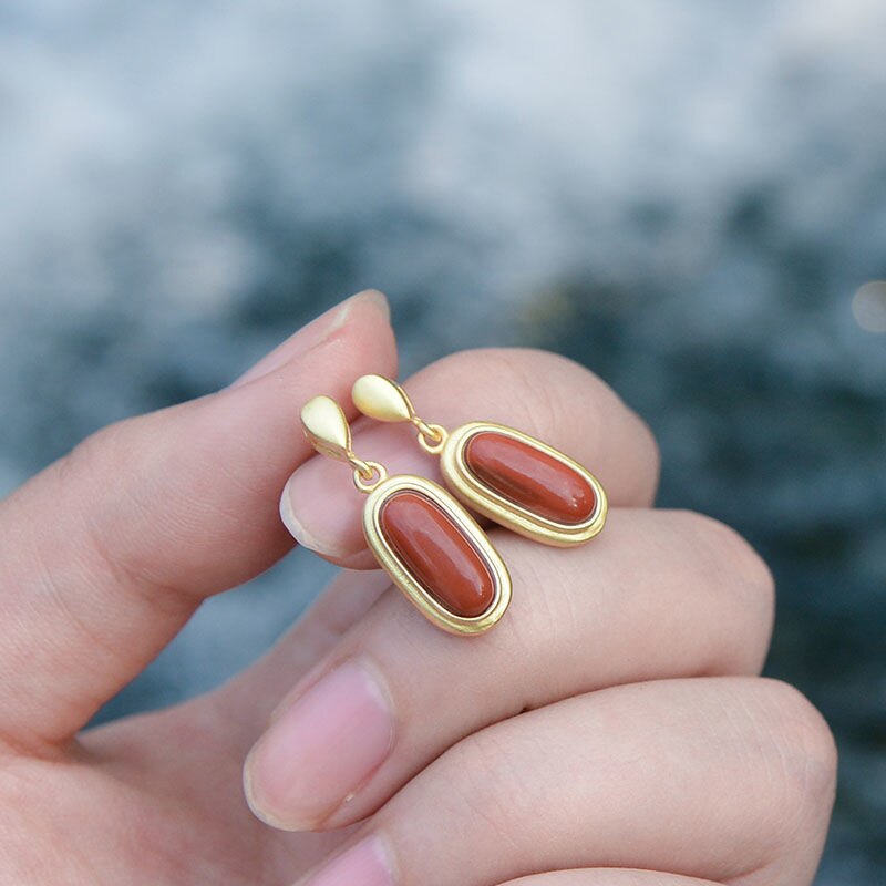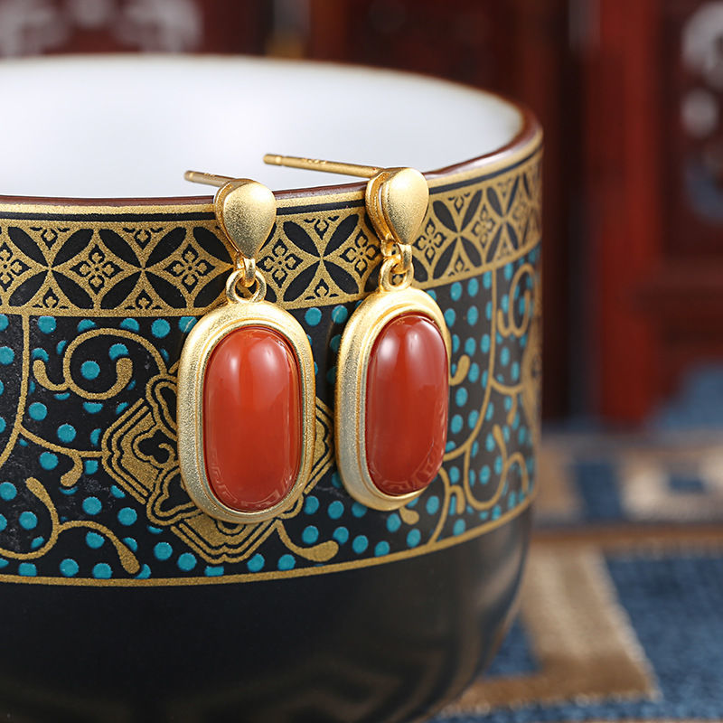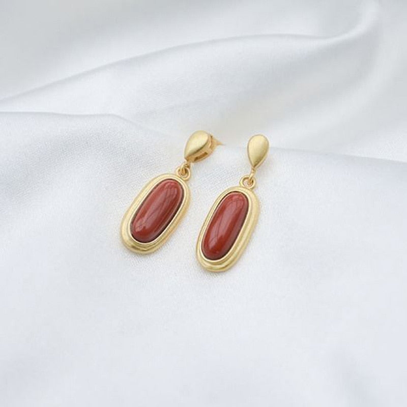Drop Earrings-New Silver Natural Southern Red Onyx Oval Long Earrings Women's Fine Exquisite Cool Style Elegant Brand Jewelry