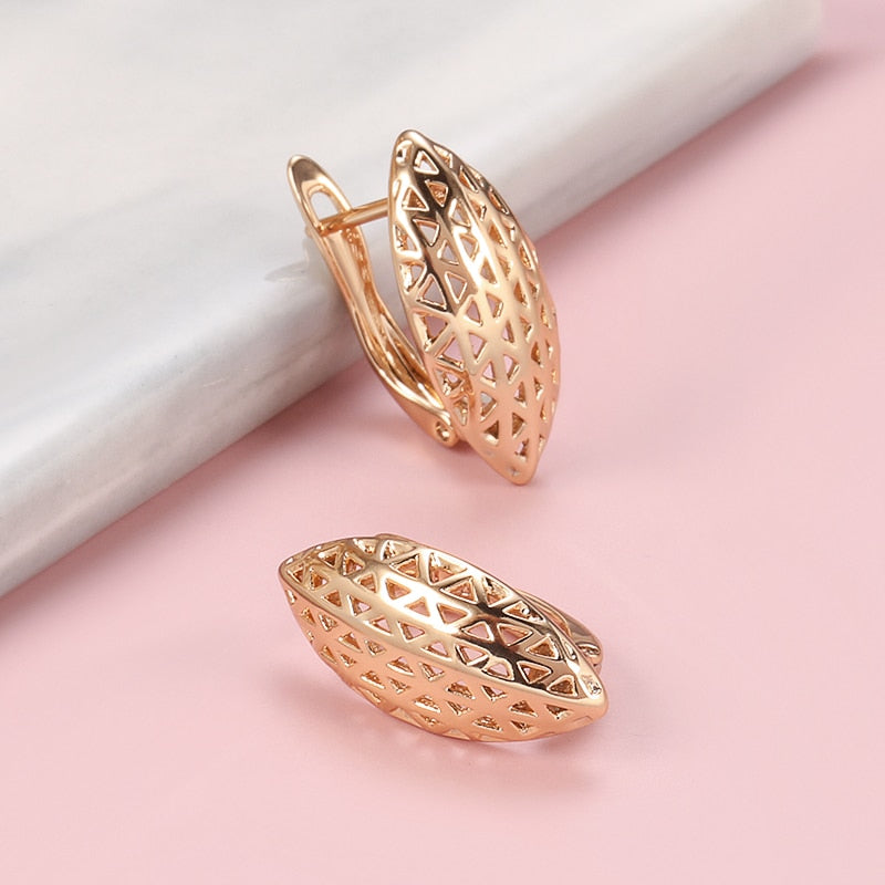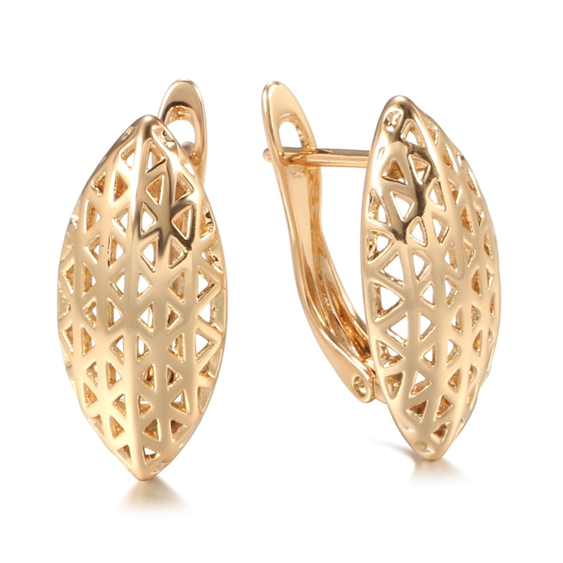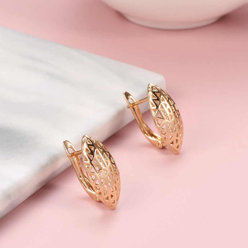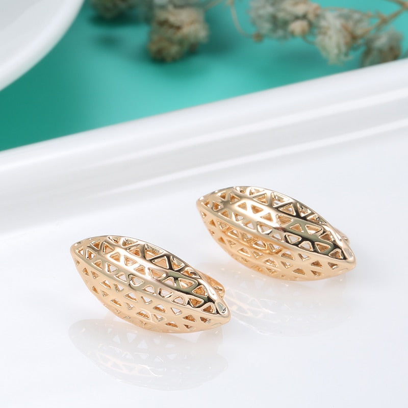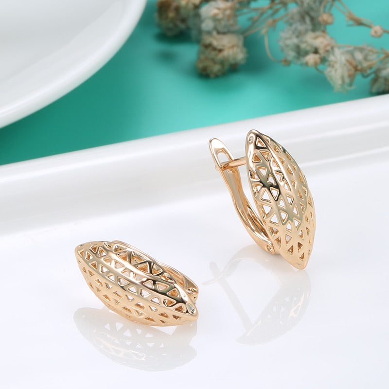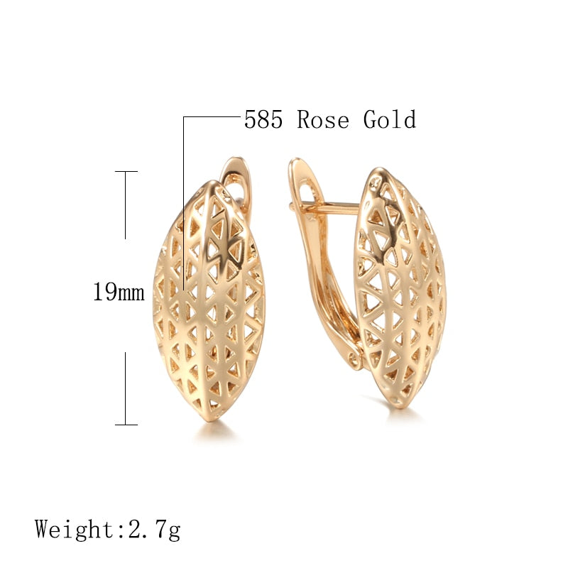 585 Gold Jewelry-New Simple Vintage Golden Earrings 585 Rose Gold Geometric Hollow Oval Weave Wedding Clip Earrings Fashion Fine Jewelry Earrings
