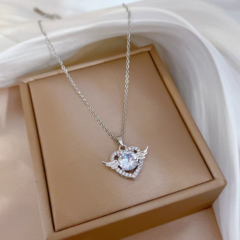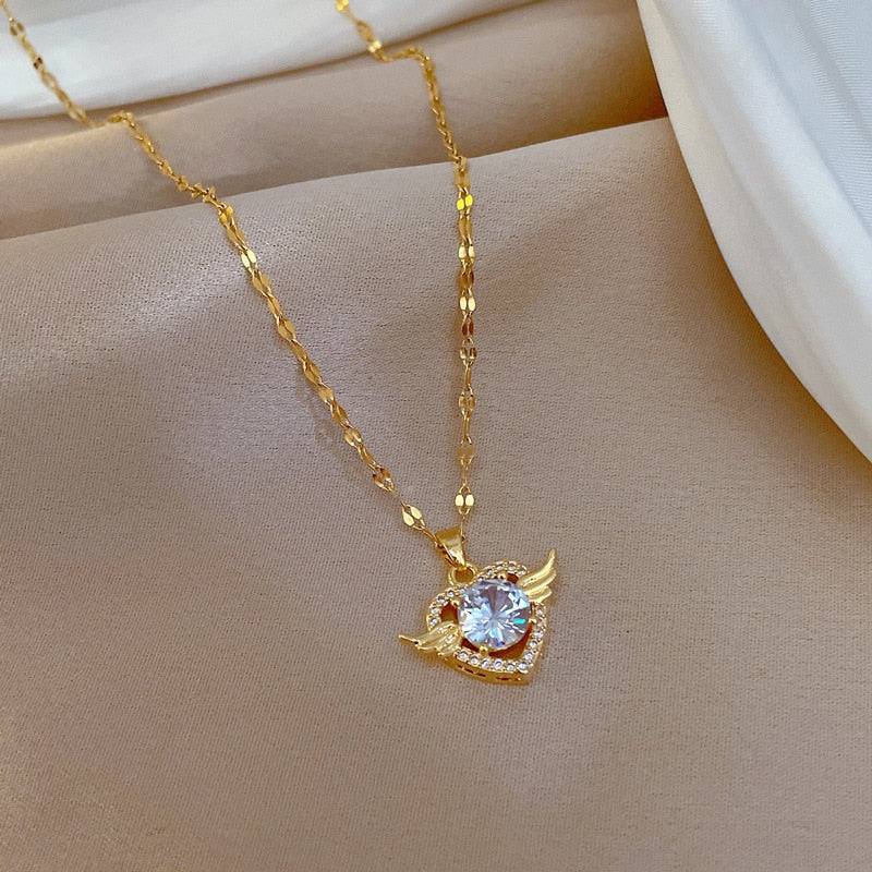 585 Gold Jewelry-Stainless Steel New Trend Love Heart Wing Necklace for Women Minimalist Clavicle Chain Choker Wedding Aesthetic Jewelry