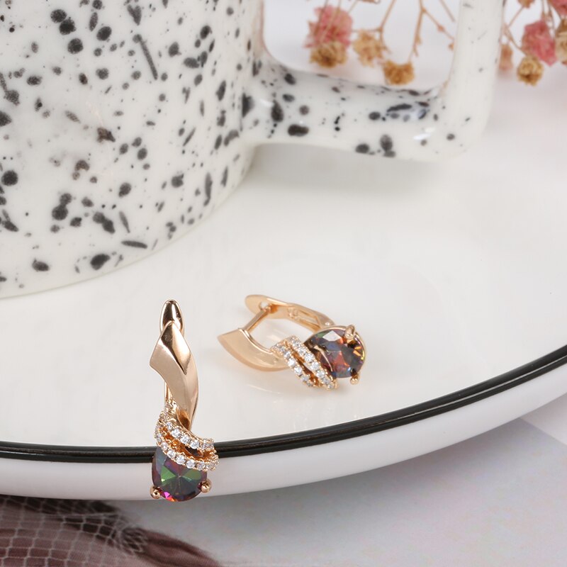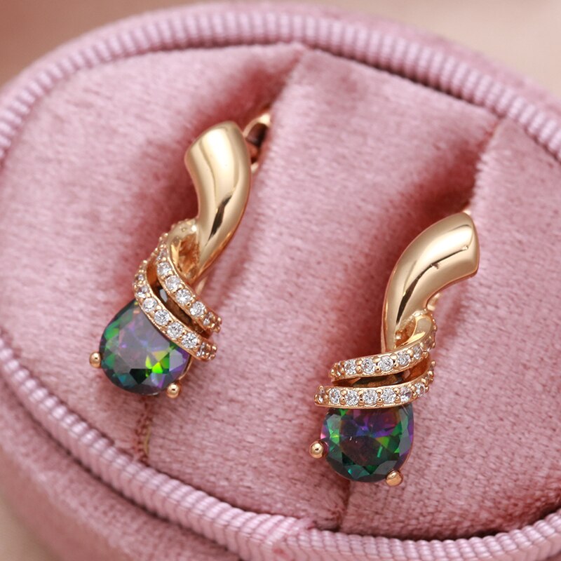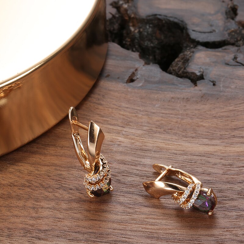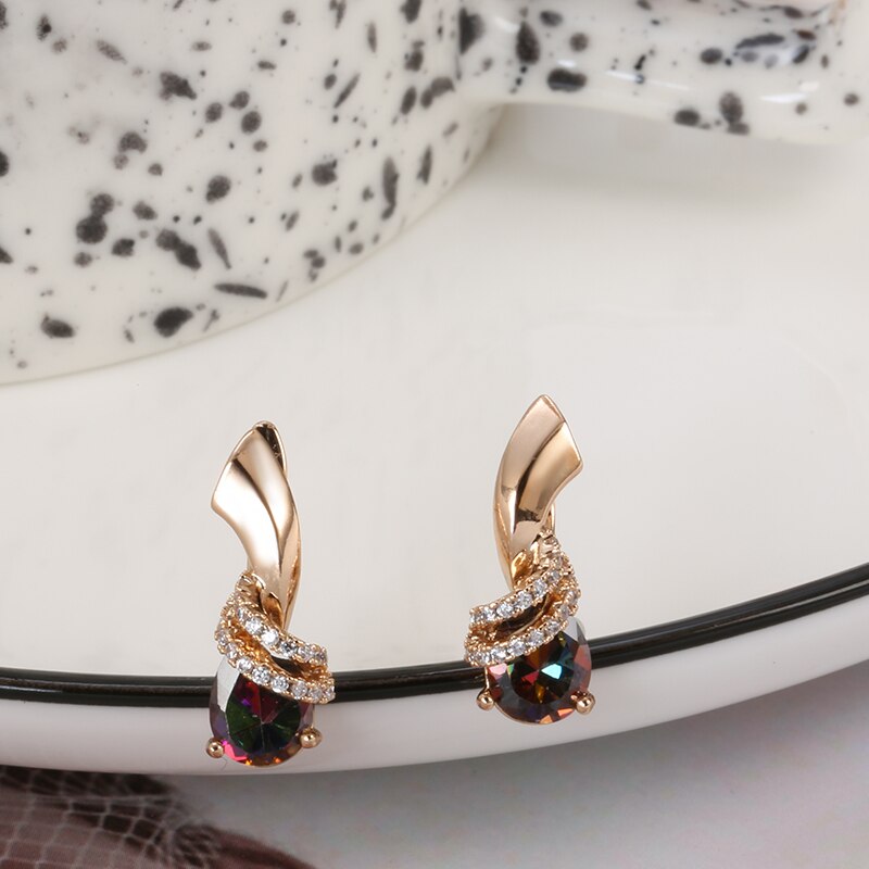 585 Gold Jewelry-New Trendy Geometric Clip Earrings 585 Gold Inlay Gradient Zircon Around CZ Elegant Drop Earrings Women Party Wedding Jewelry