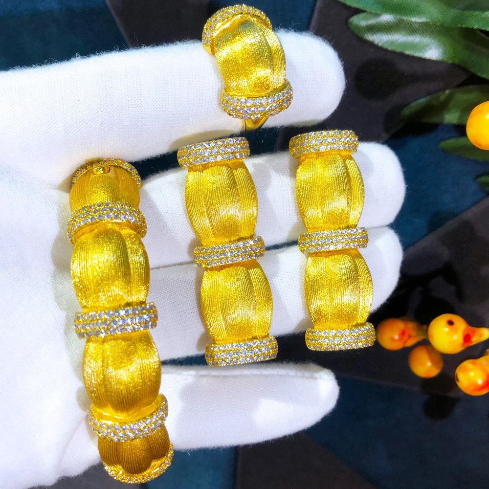 New Trendy Luxury African Earrings Jewelry Sets For Women Wedding Party Zircon Crystal Dubai Bridal Jewelry Set Gift