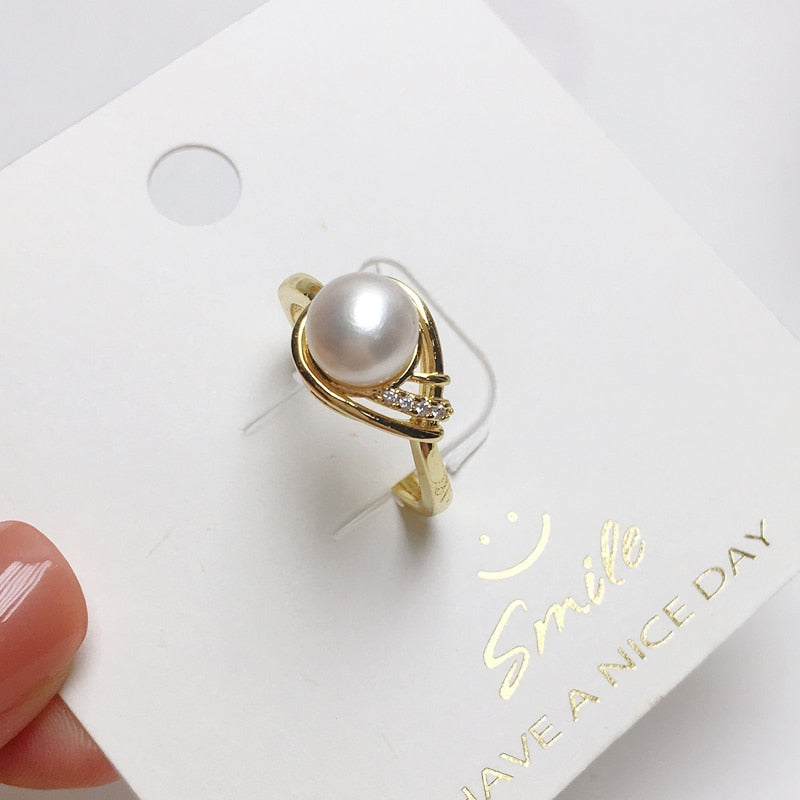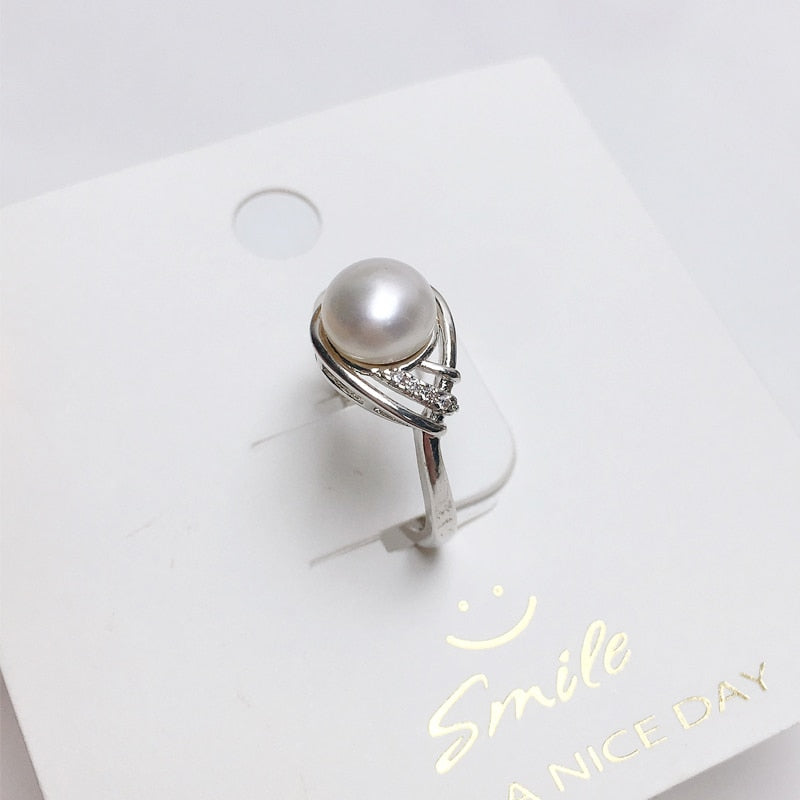 Pearl Rings-New Trendy Pearl Ring Natural Freshwater Pearl 925 Sterling Silver Ring For Women Party Wedding Engagement Gift