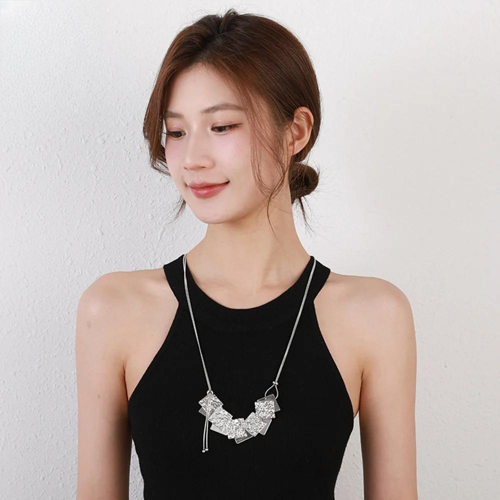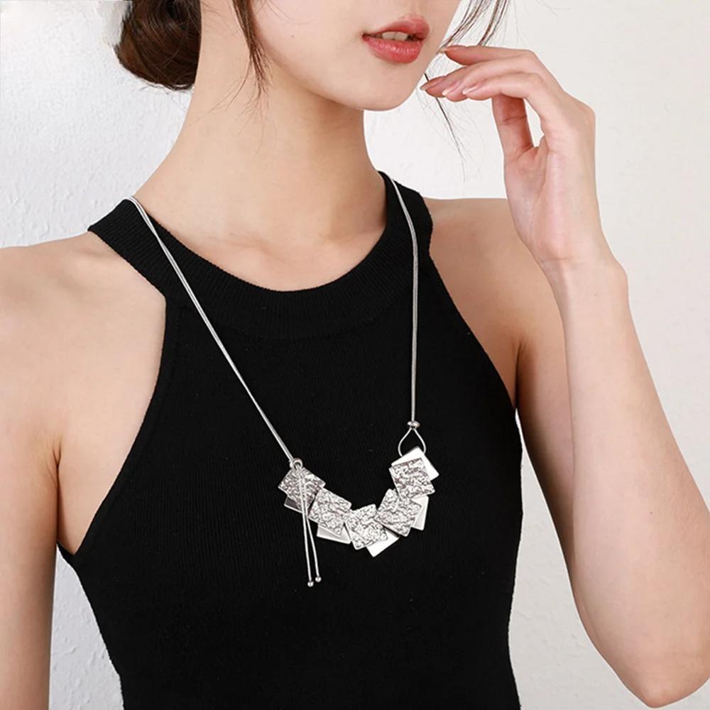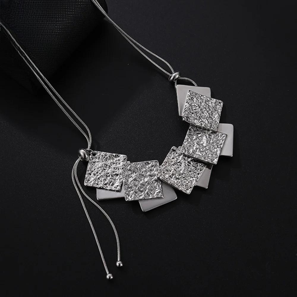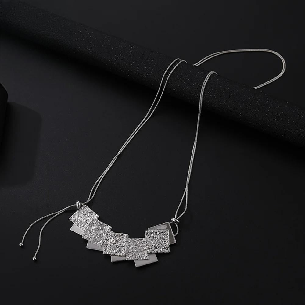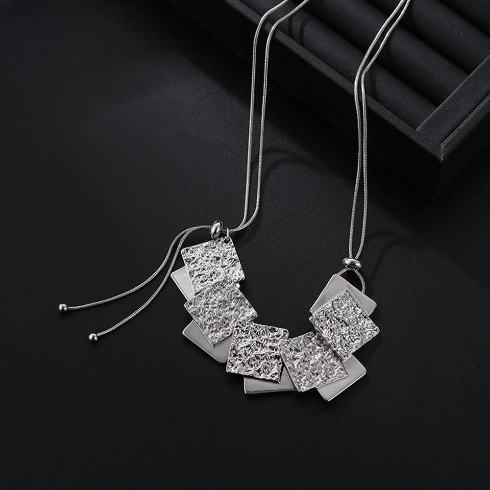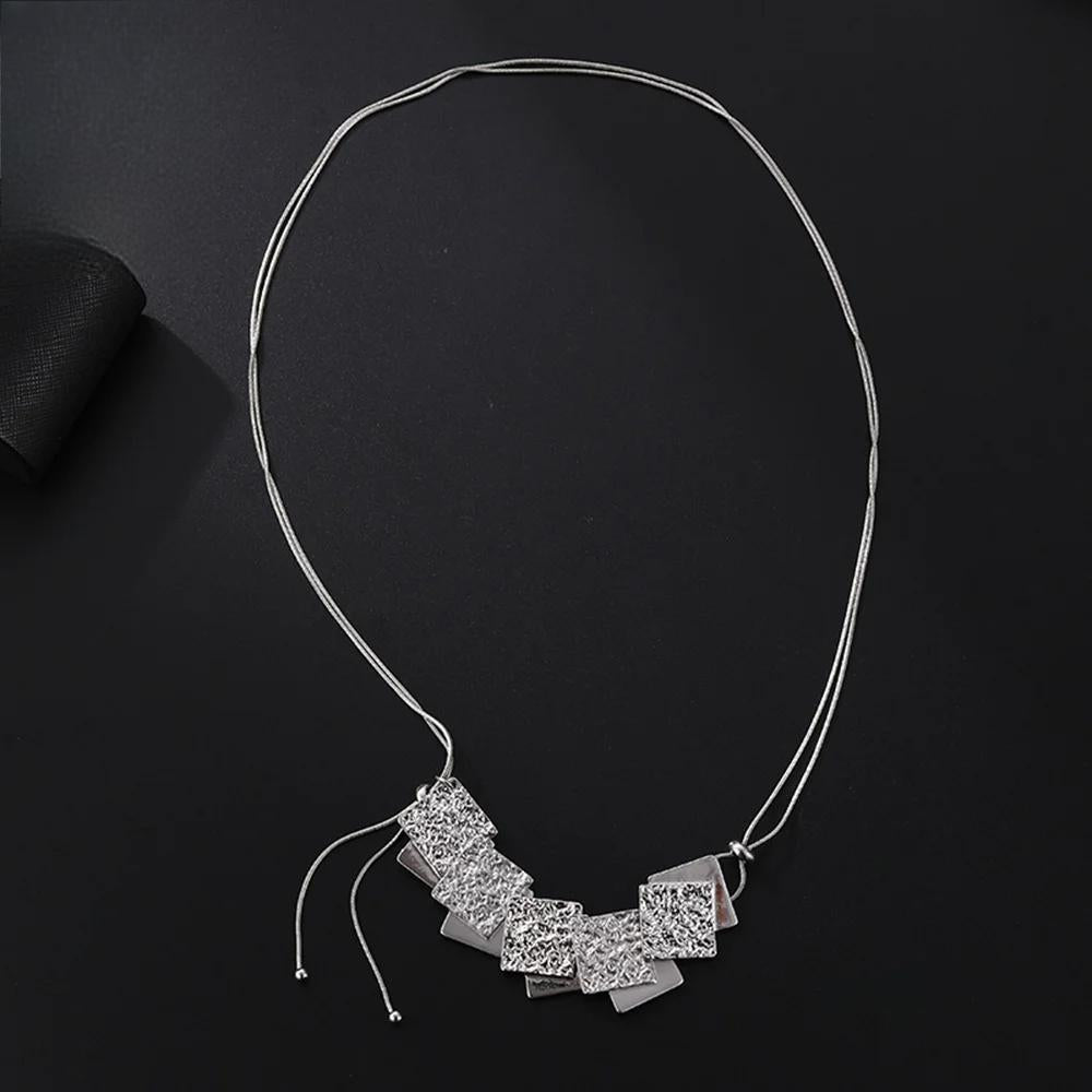 New Trendy Silver Color Square Necklace for Women Korean Fashion Metal Geometric Vintage Suspension Pendants Jewelry Accessories