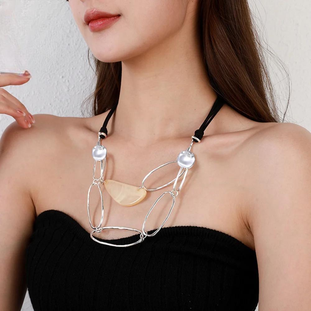 New Trendy Statement Neck Chokers Korean Fashion Geometric Pendant Necklace for Women Irregular Goth Jewelry Vintage Accessories