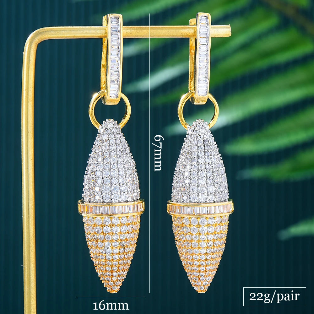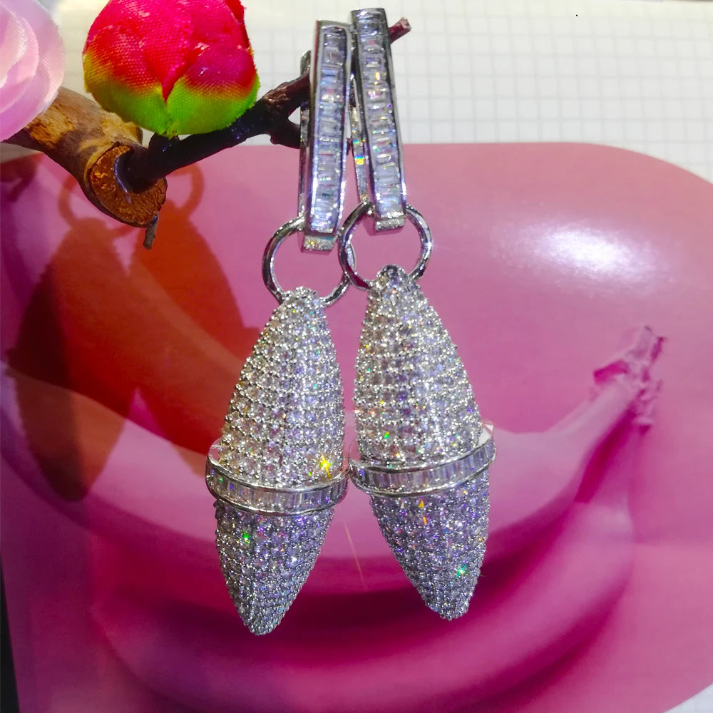 New Unique Design Bullet shape Pendant Earrings for Women Noble Luxury Fashion Party Show Earrings Jewelry Shiny Gift