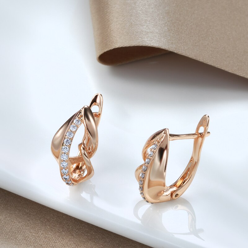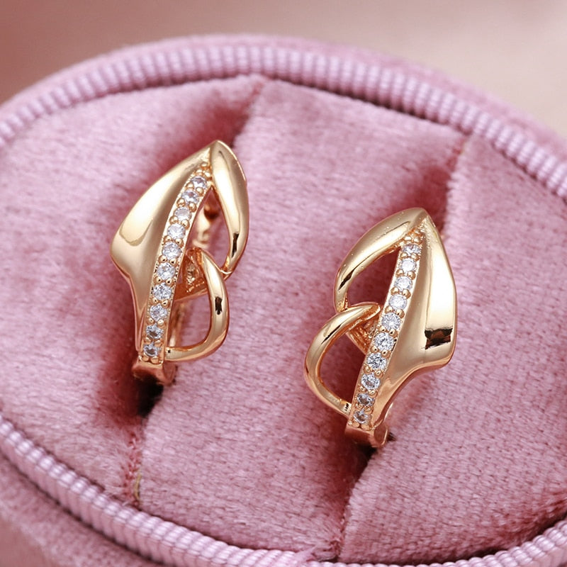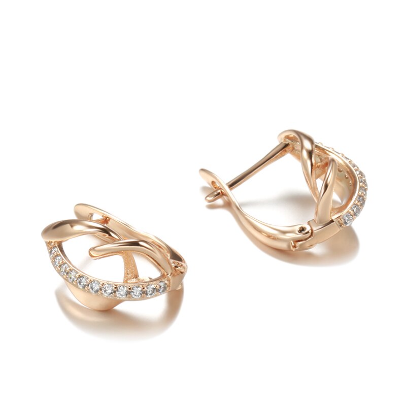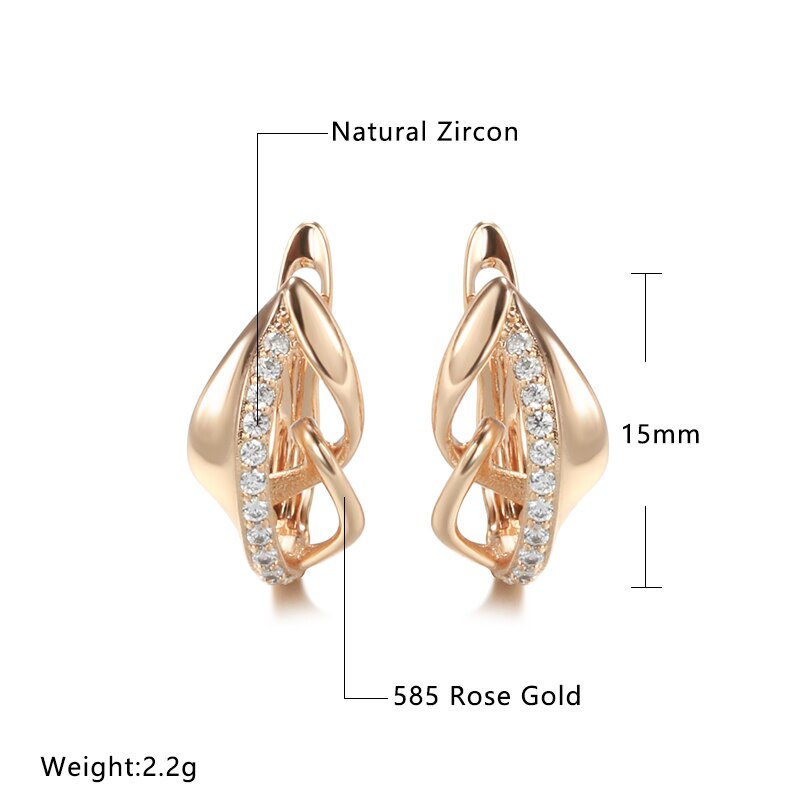585 Gold Jewelry-New Vintage Elegant 585 Rose Gold Fashion Zircon Earrings Hollow & Glossy Cilp Earrings Party Hoops Wedding Bling Fine Jewelry