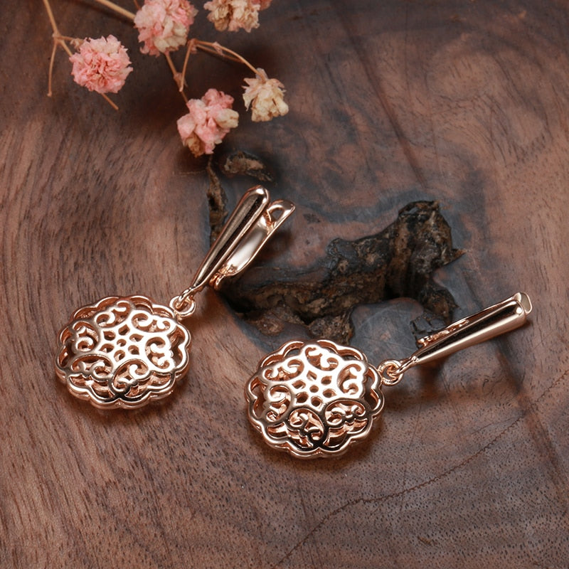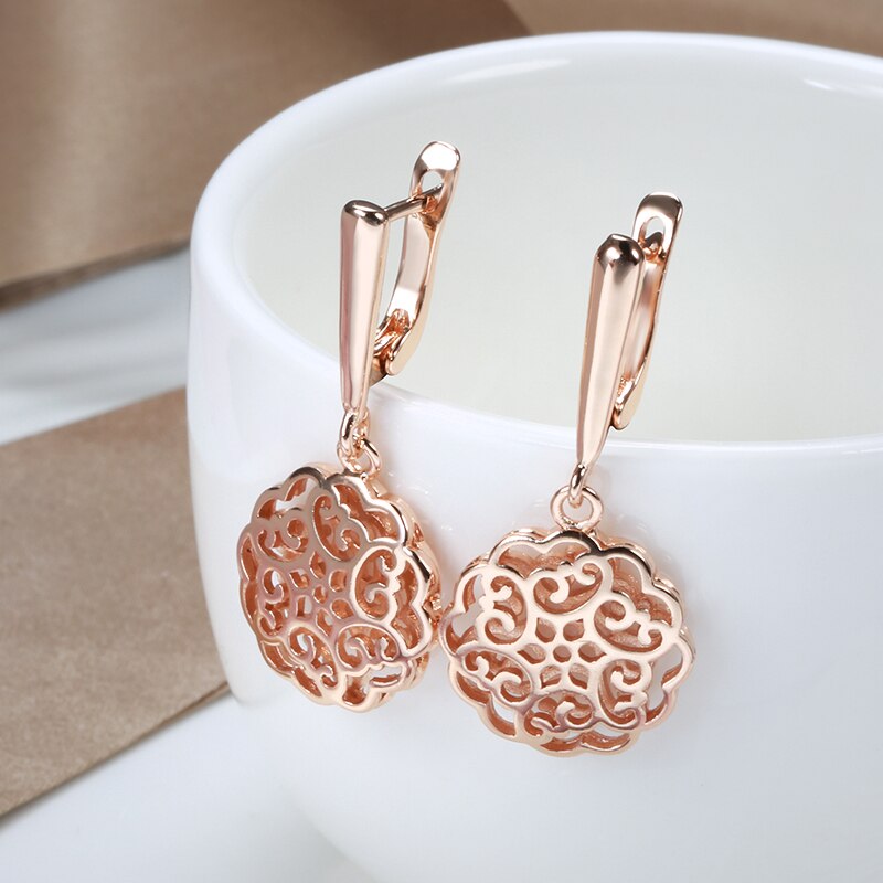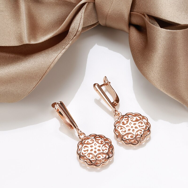585 Gold Jewelry-New Vintage Hollow Geometric Pendant Earrings 585 Rose Gold for Women Lucky Knot Drop Clip Earrings Long Wedding Golden Jewelry