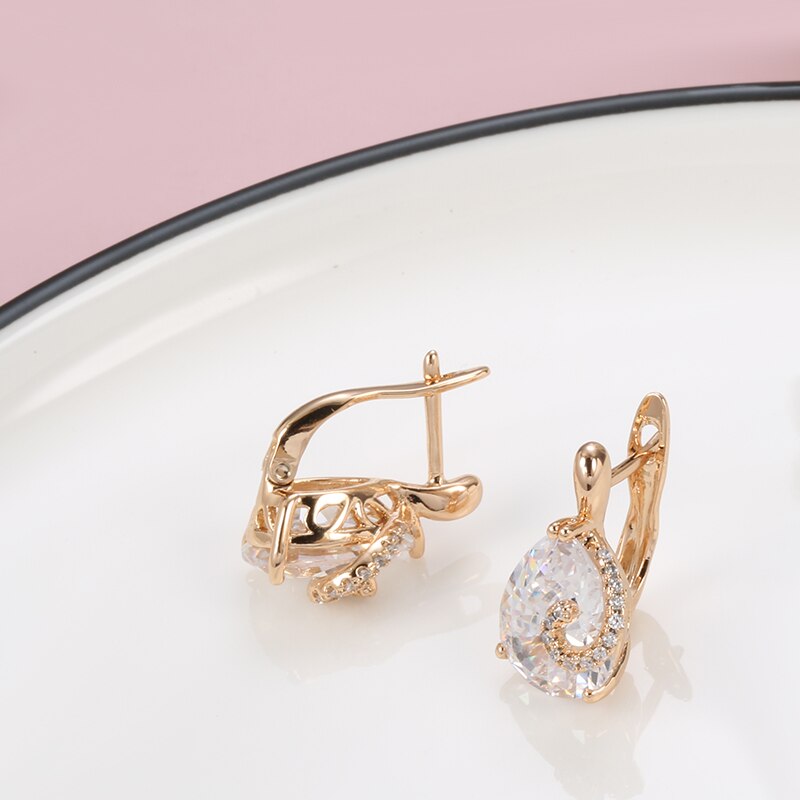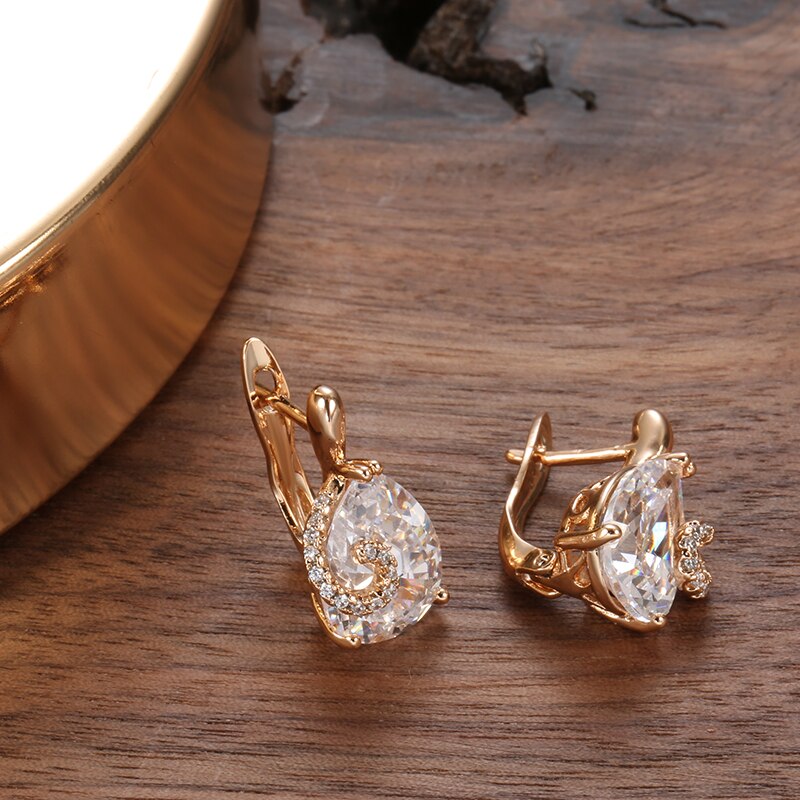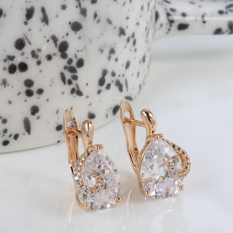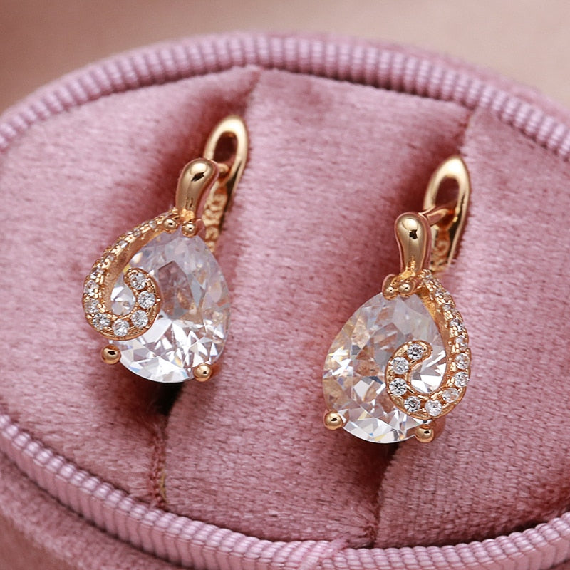 585 Gold Jewelry-New Waterdrop Cut Natural Zircon Women's Earrings Luxury 585 Gold Wedding Classic Jewelry Girls Elegant Piercing Earrings