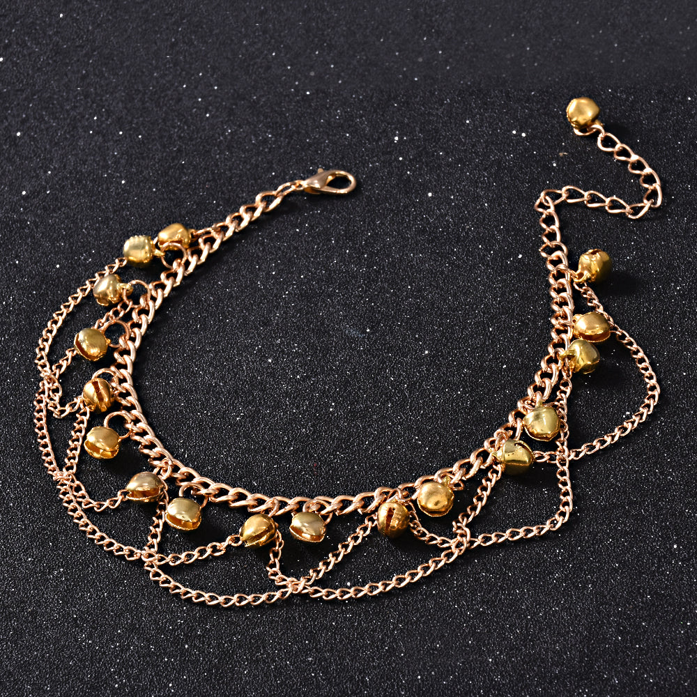 Anklets-New Women Gril Tassel Chain Bells Sound Gold Metal Chain Anklet Ankle Bracelet Foot Chain Jewelry Beach Anklet