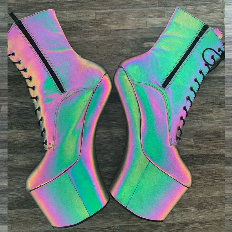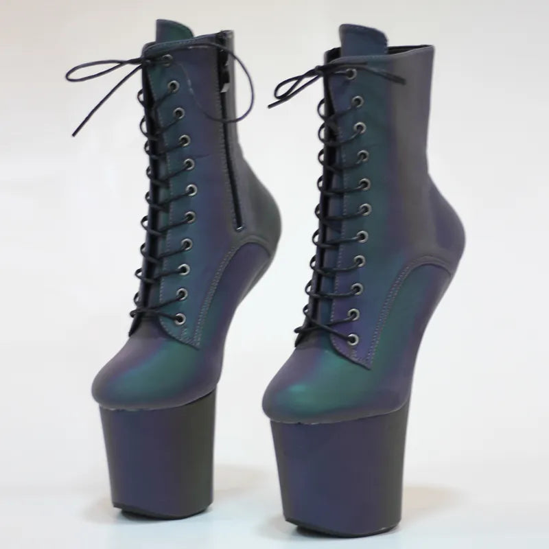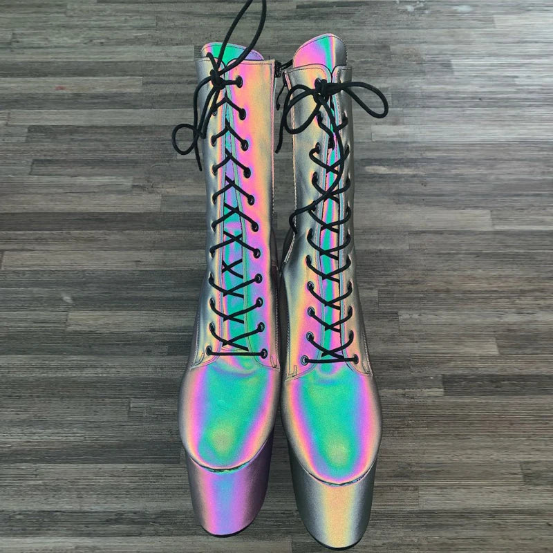 Night Colorful Iridescence Reflective Ankle Boots Platform Stripper Sexy Exotic Pole Dancing Clubwear