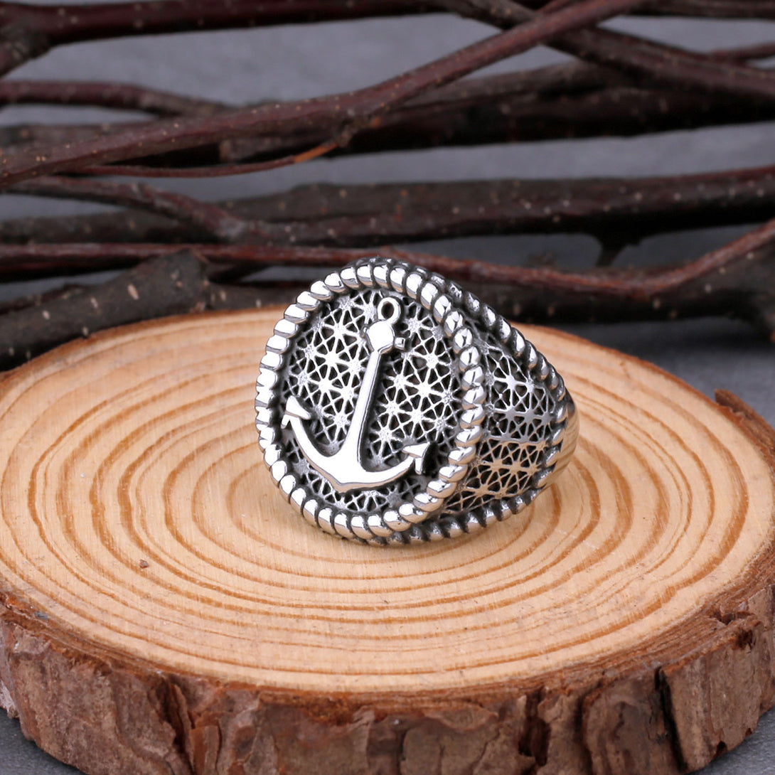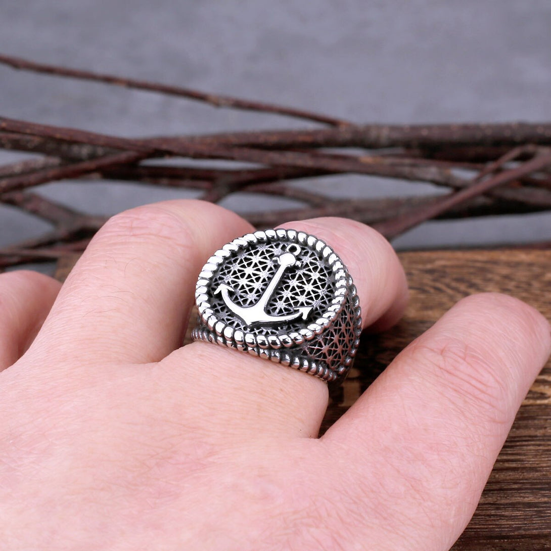 Vikings Jewelry-Nordic Viking Anchor Ring Men's Stainless Steel Voyager Vintage Ring Hip Hop Punk Biker Fashion Charm Viking Male Jewelry Gift