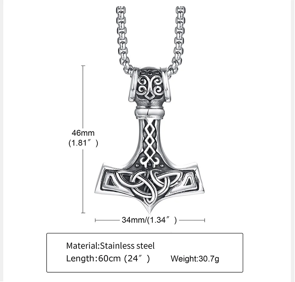 Norse Mythology Mjolnir Necklaces: Dangling below the wheat chain is the thor's hammer pendant that is glitterring with gold shine capturing attention from all around. Mammen style carved on hammer adds eye-catching sparkle to any ensemble of yours.