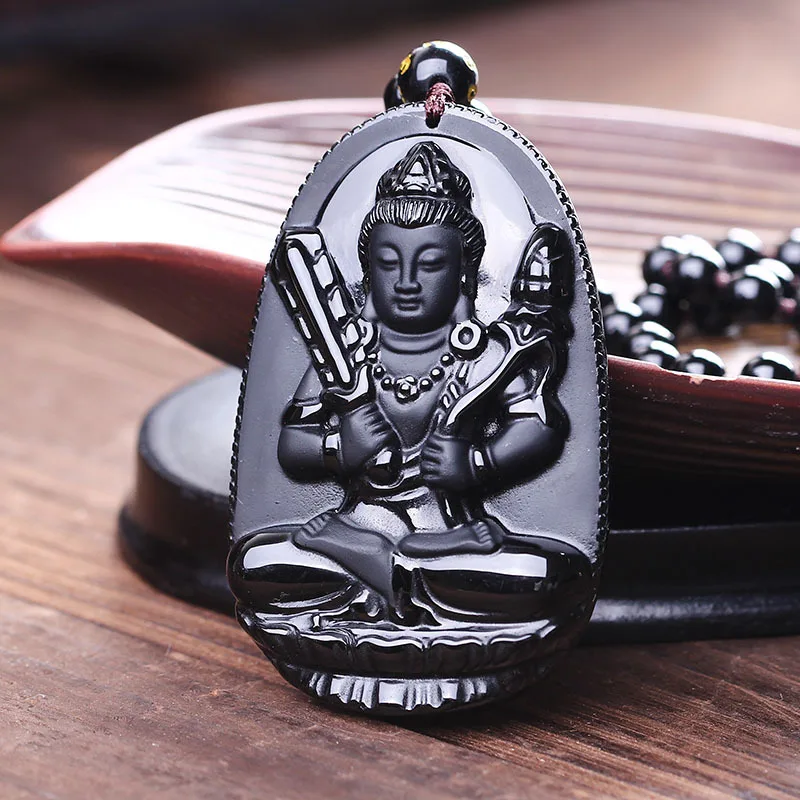 Obsidian Carved Buddha Lucky Pendant