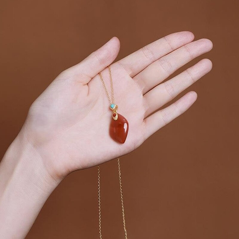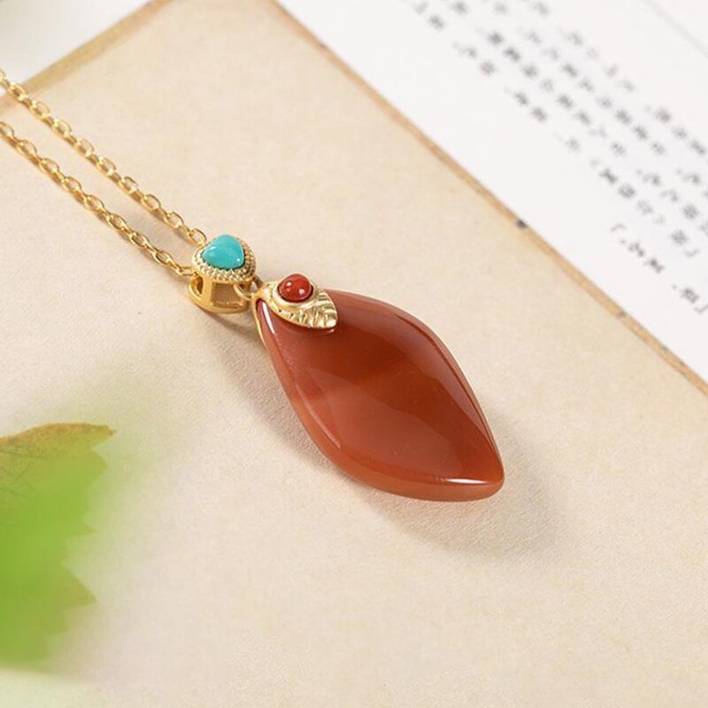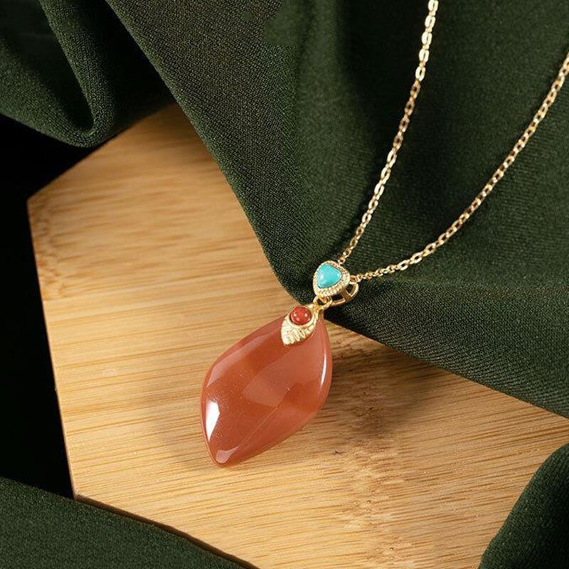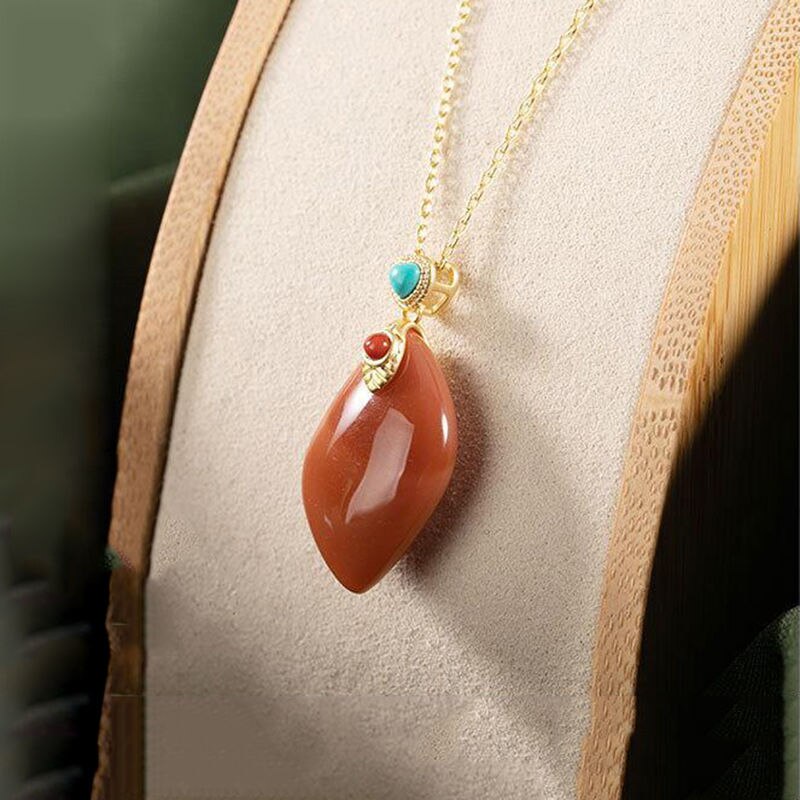 Pendants-Original Design Brand New Antique Silver Inlaid Natural Southern Rubellite Leaf Necklace Pendant Women's Fine Jewelry