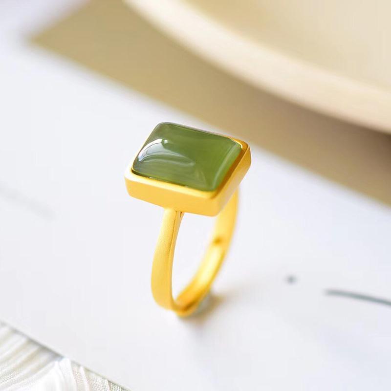 Cocktail Ring-Original design natural Hetian Jasper geometric opening adjustable ring Chinese style retro court elegant women's silver jewelry