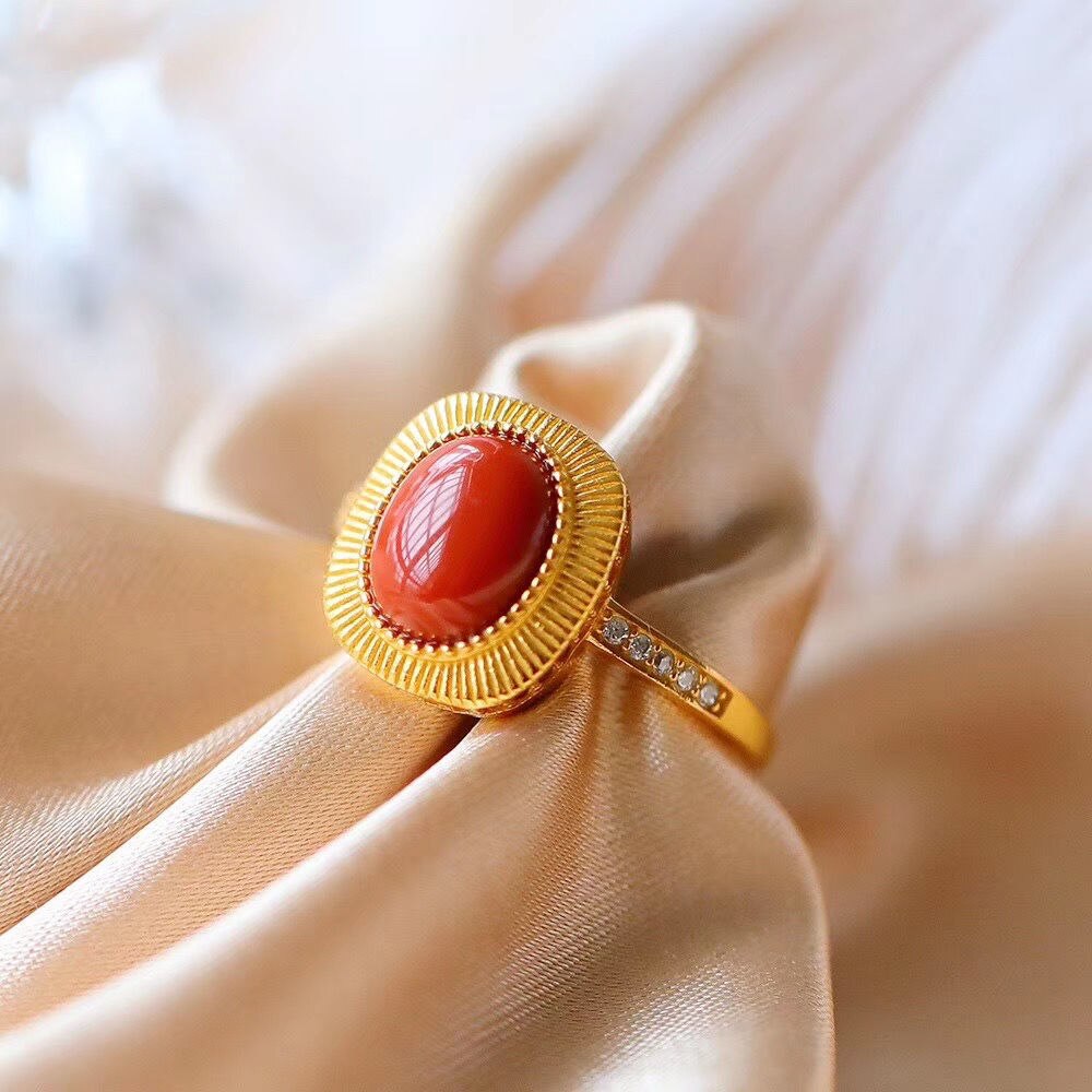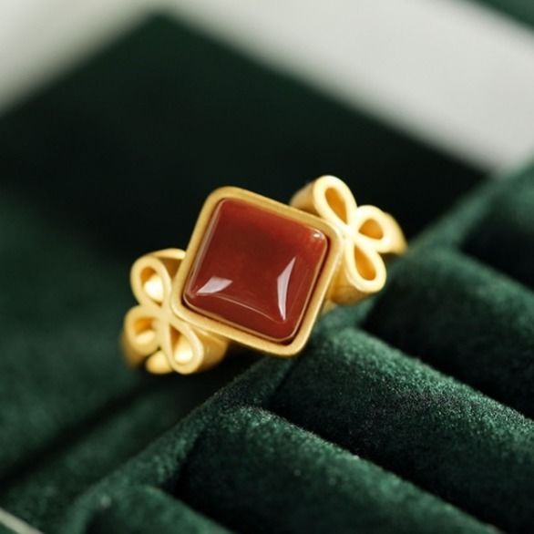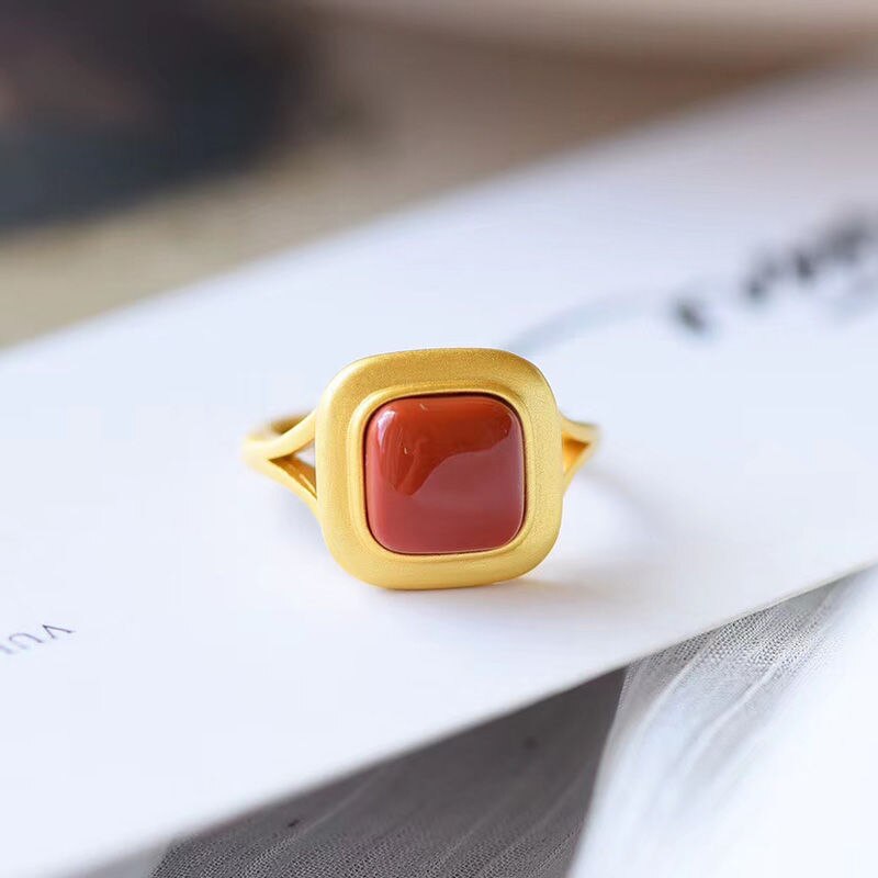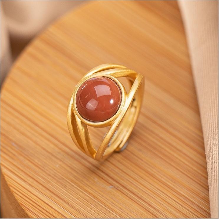 Cocktail Ring-Original Epoxy Enamel Porcelain Craftring Chinese retro palace style gilt light luxury women's