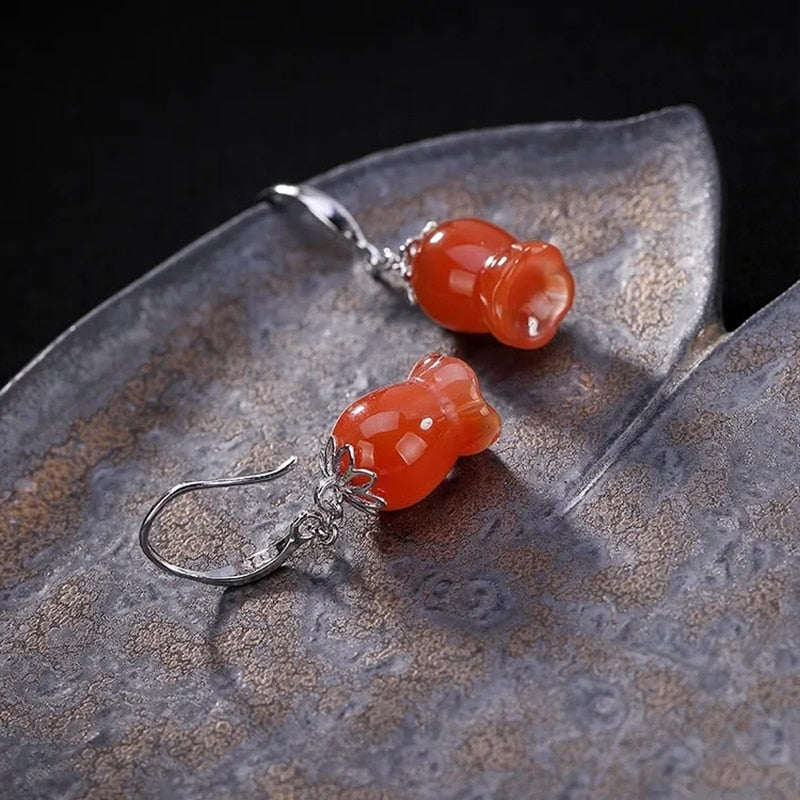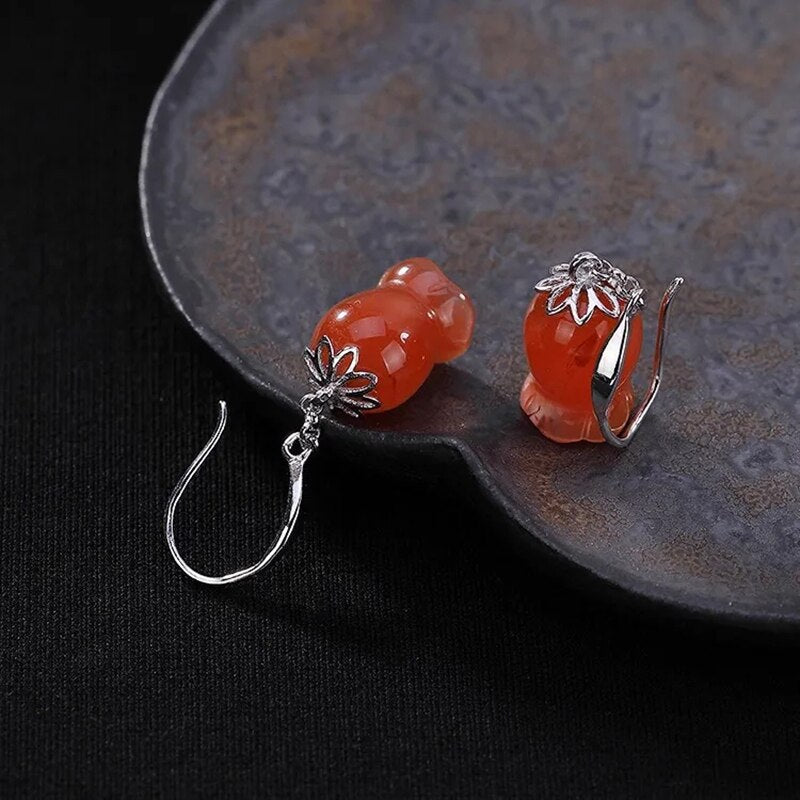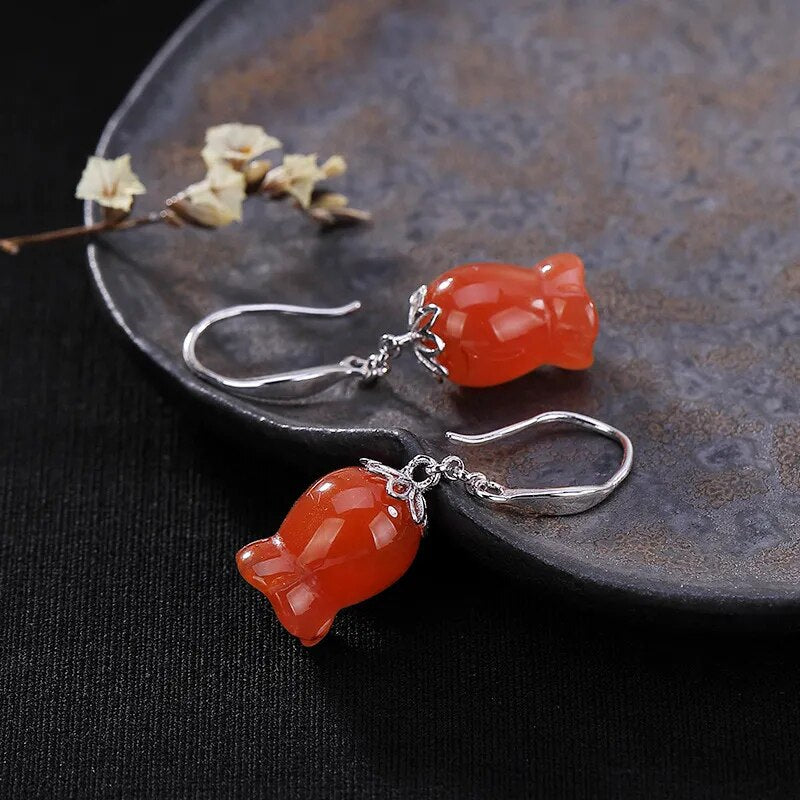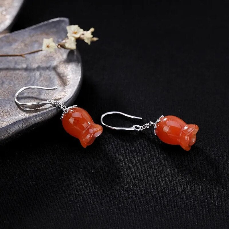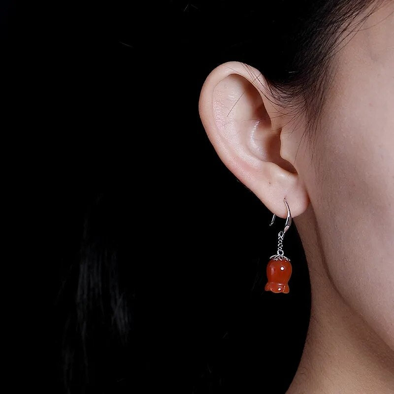 Drop Earrings-Original new natural southern carnelian magnolia flower earrings Chinese style retro fresh palace style ladies jewelry