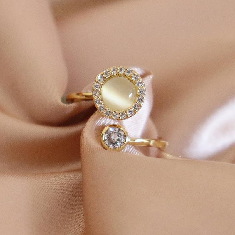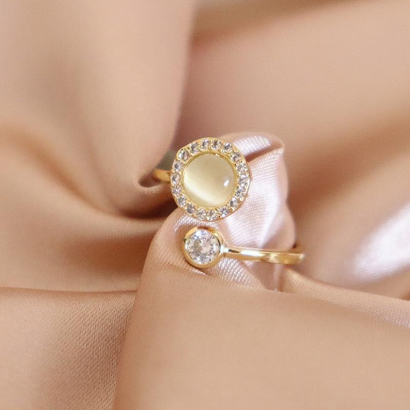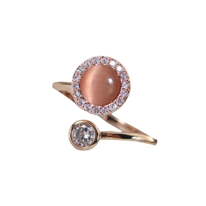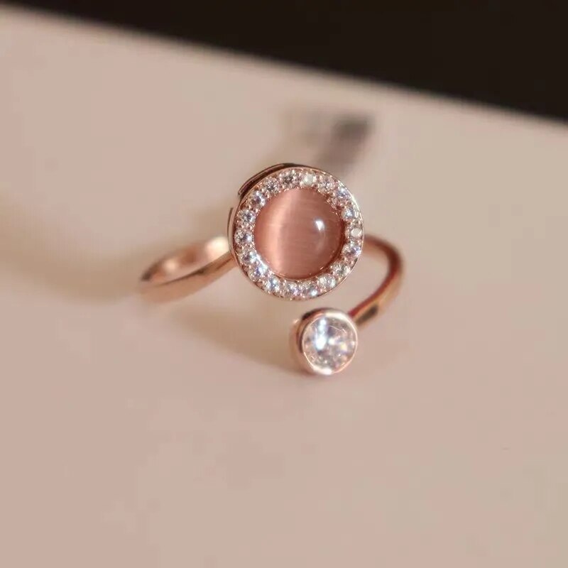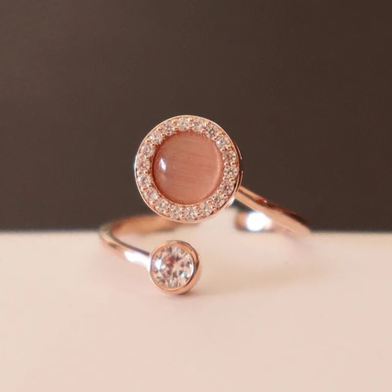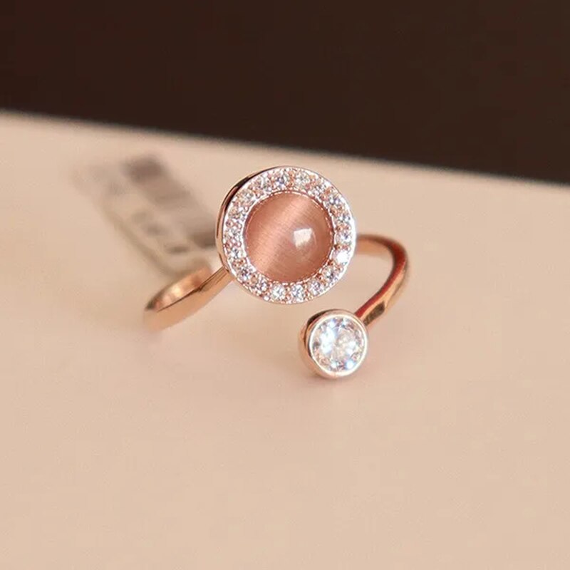 Cocktail Ring-Original Round Pink Gemstone Turnable Ladies Ring Opening Adjustable Elegant Glamour Luxury Delicate Silver Jewelry
