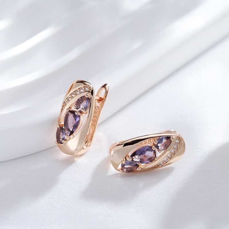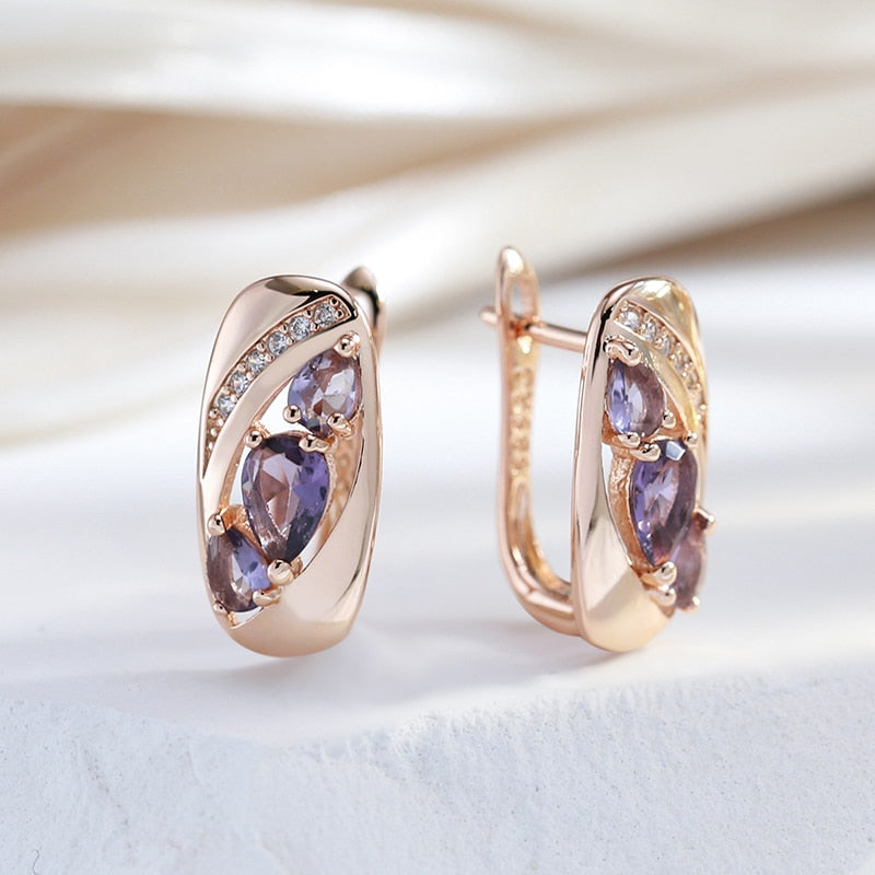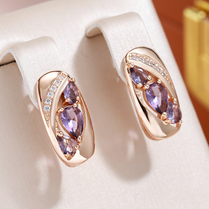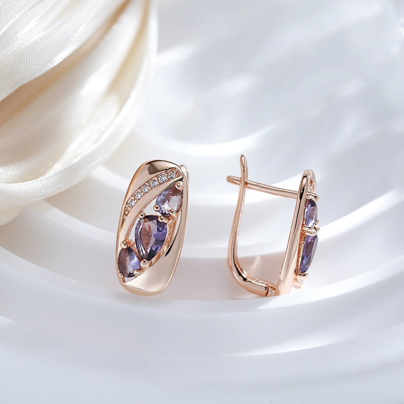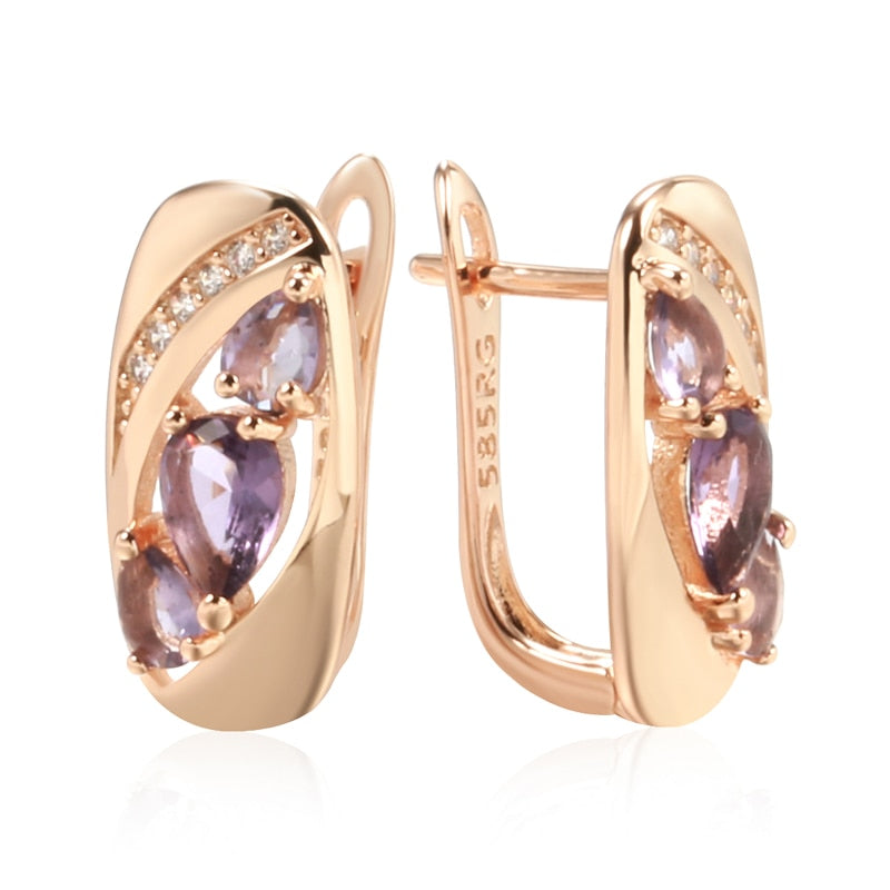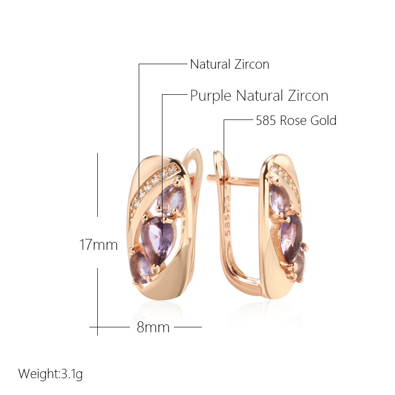 585 Gold Jewelry-Oval Hollow Match Purple Zircon Geometric Earrings for Women 585 Gold Color Trendy Jewelry Party Vintage Accessories