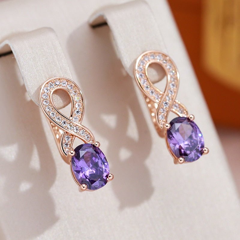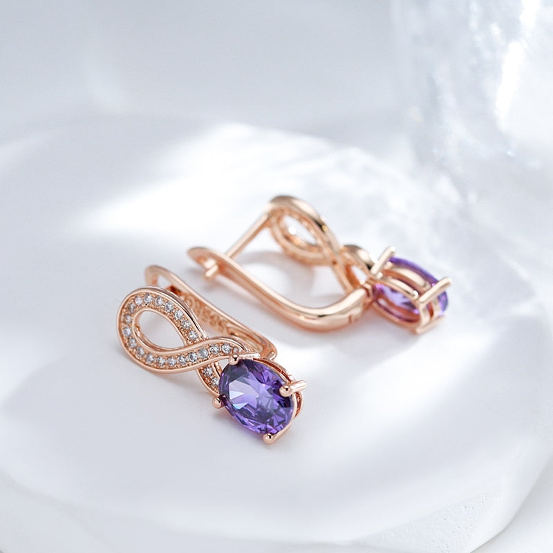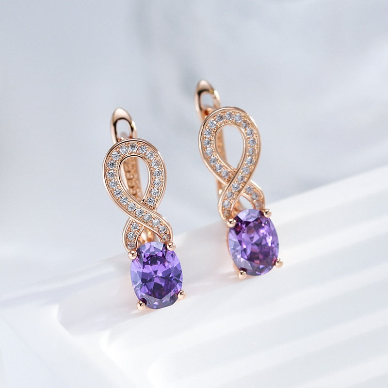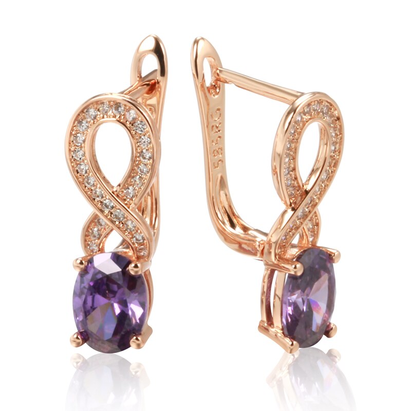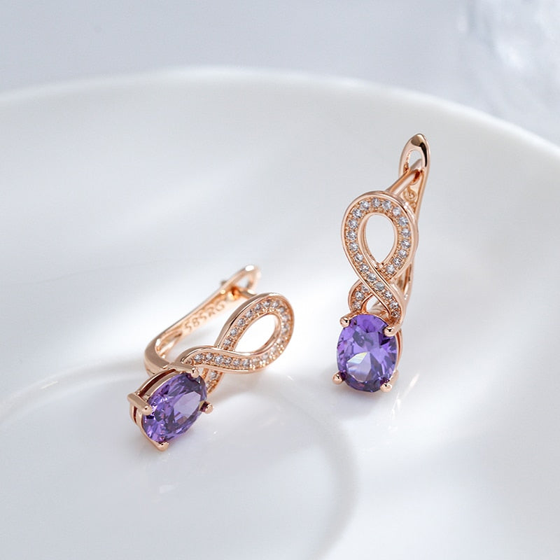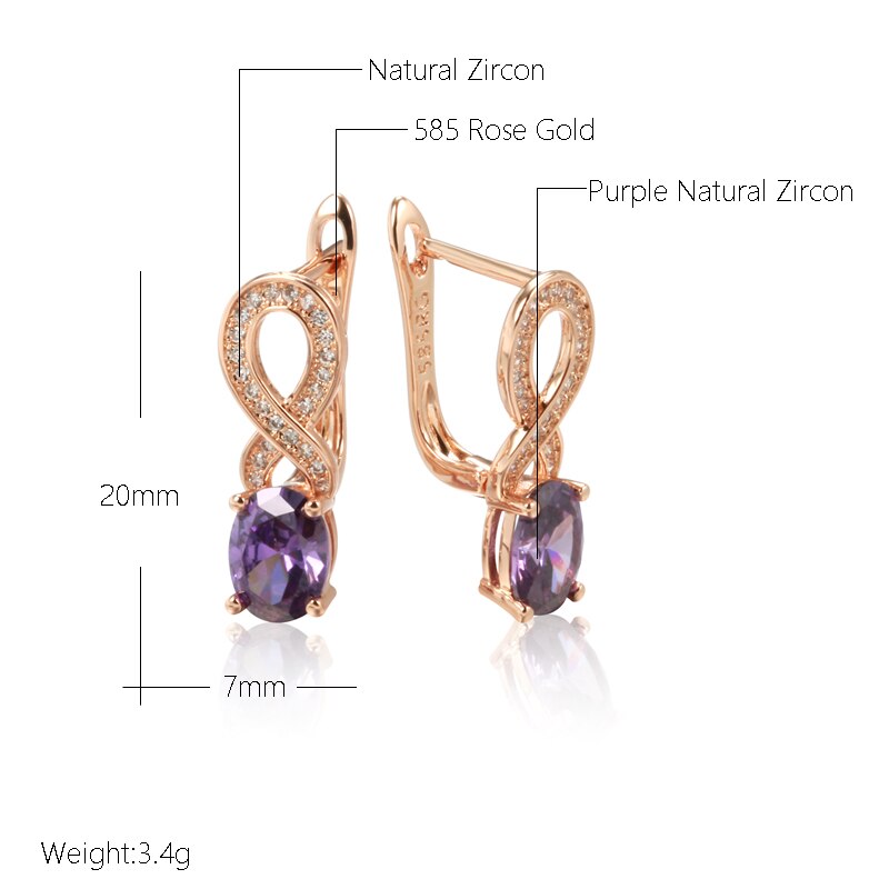 585 Gold Jewelry- Oval Purple Zircon Full Inlay Crossing Earrings for Women 585 Gold Color Wedding French Jewelry Dangle Accessories