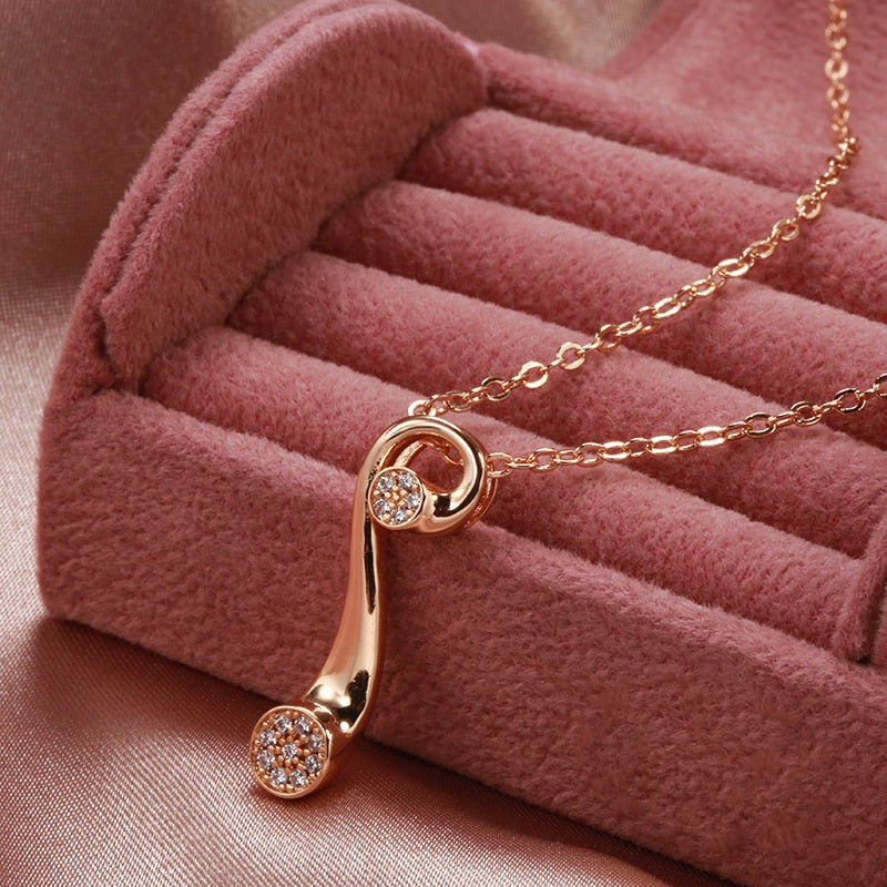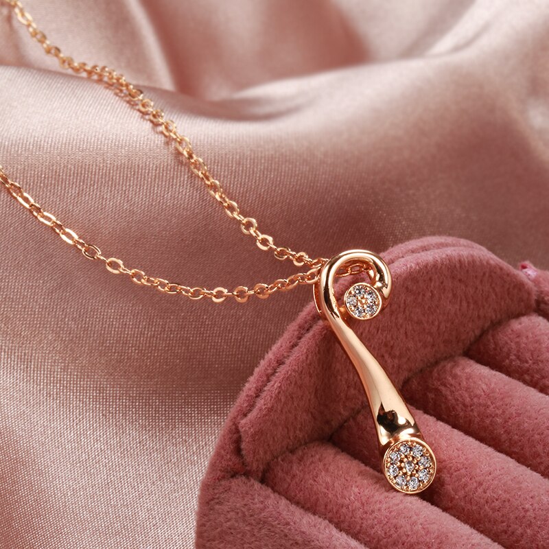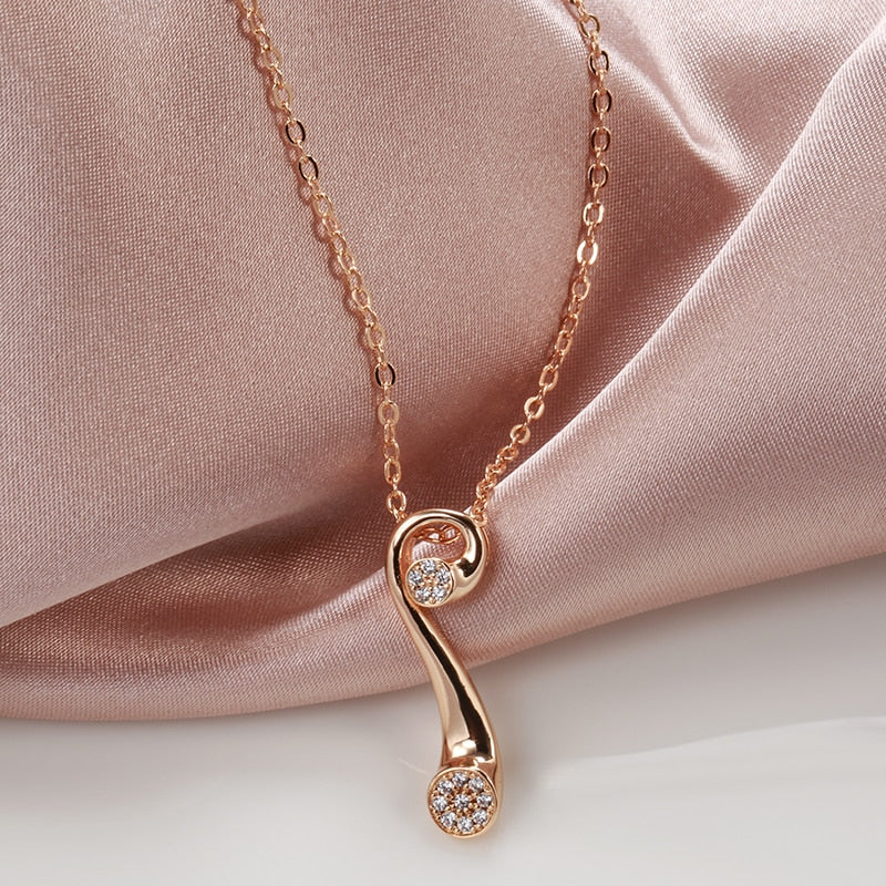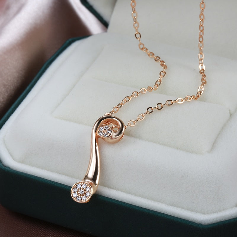 585 Gold Jewelry-Personality Geometric Design Zircon Pendant Women Necklace 585 Gold Color Long Chain Vintage Wedding Party Jewelry