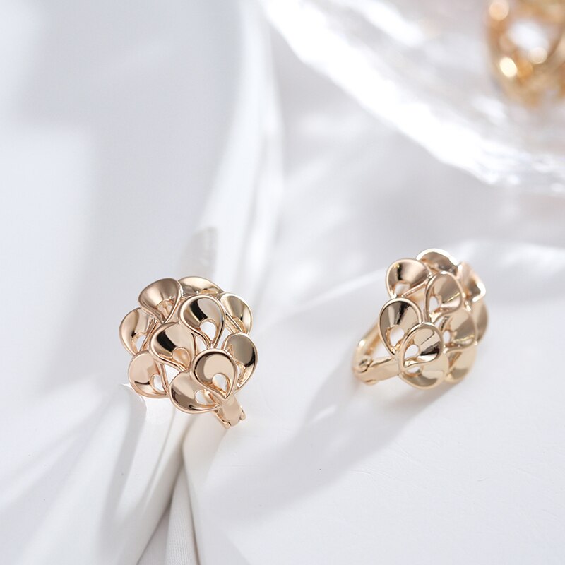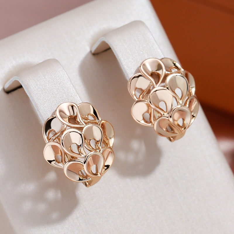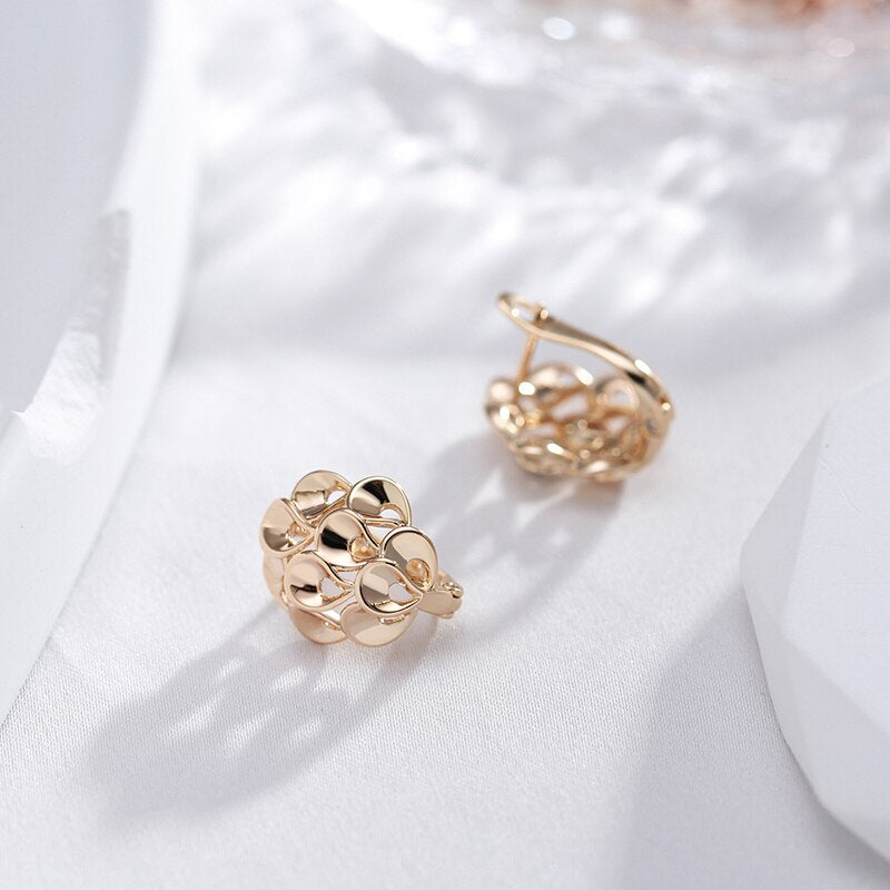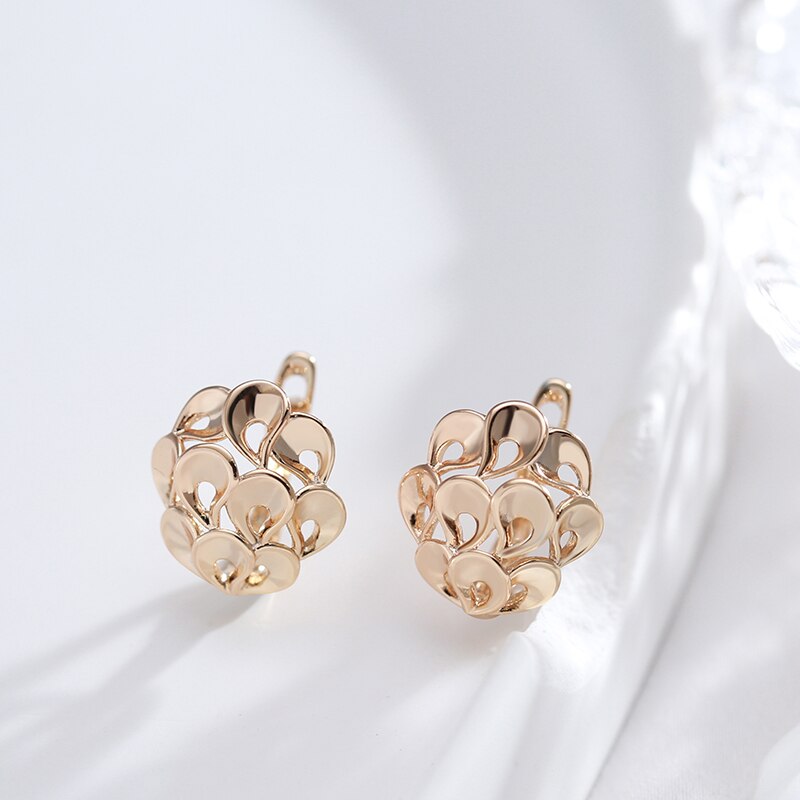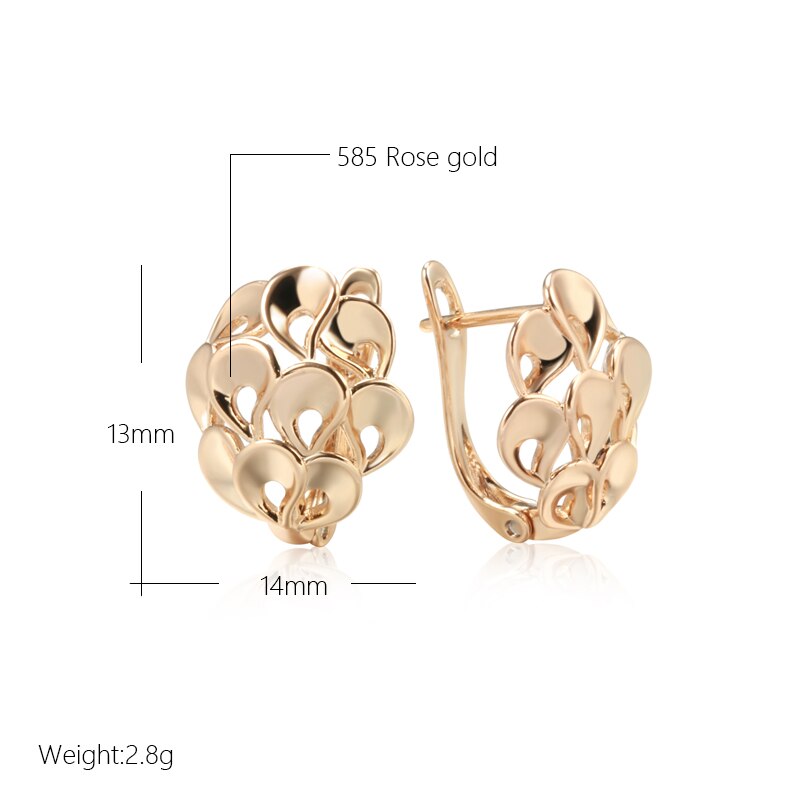 585 Gold Jewelry-Personality Hollow Drop Design 585 Gold Color Glossy Earrings for Women Party Fashion Accessories Geometric Jewelry