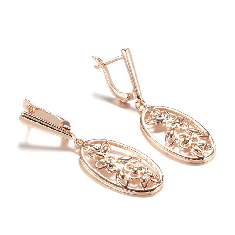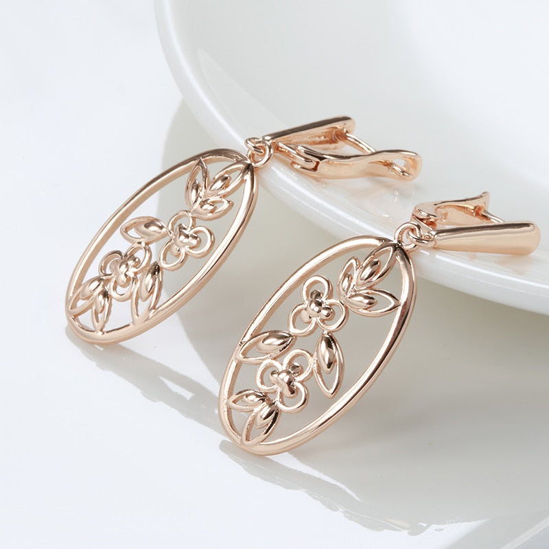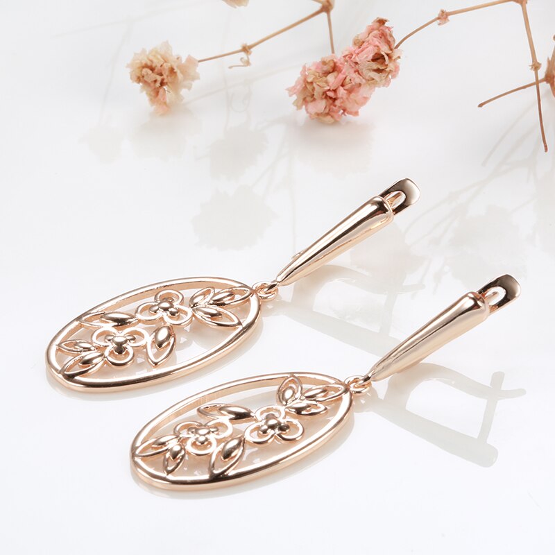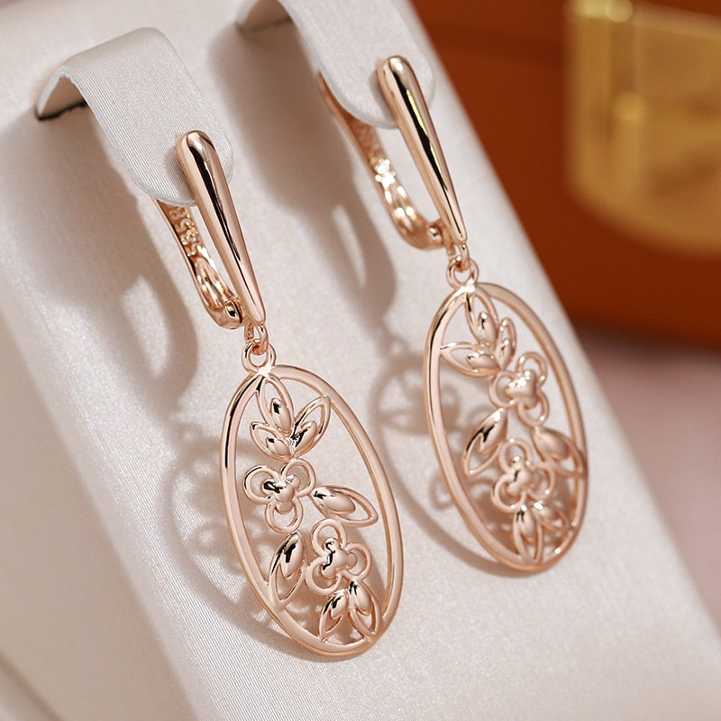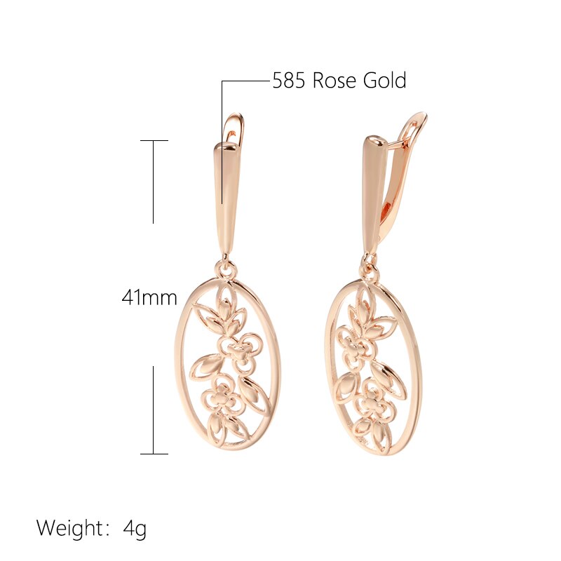 585 Gold Jewelry-Personality Hollow Flower Oval Pendant Earrings for Women 585 Gold Color Luxury Daily Jewelry Girls Sexy Accessories