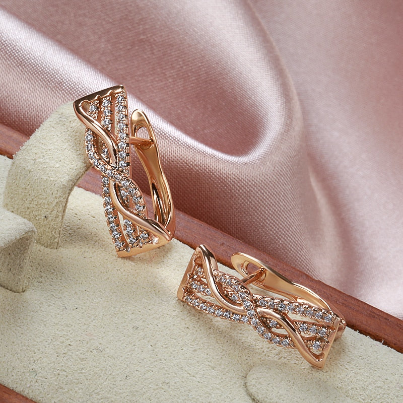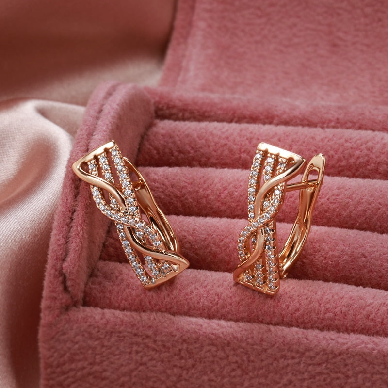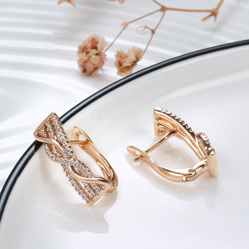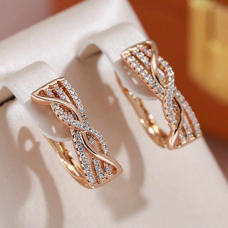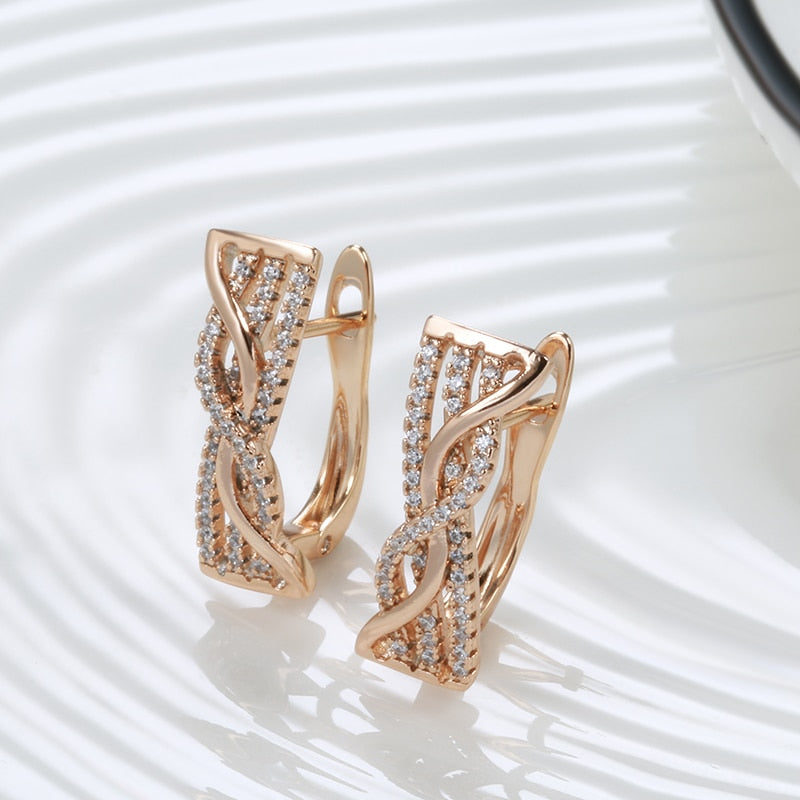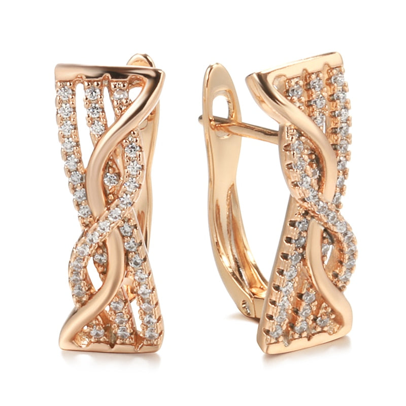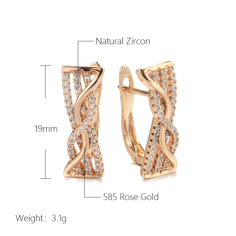 585 Gold Jewelry-Personality Hollow Twist Full Zircon Dangle Earrings Gold Color Trendy Women Jewelry Luxury Wedding Accessories