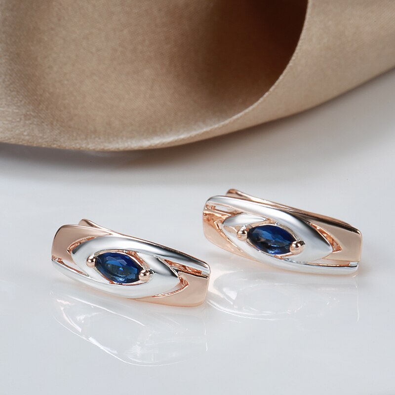 Personality Pointed Blue Zircon Silver Color Texture 585 Gold Women';s Clip Earrings