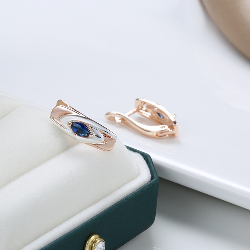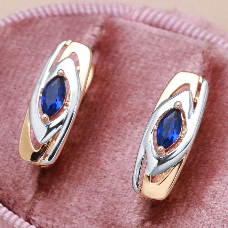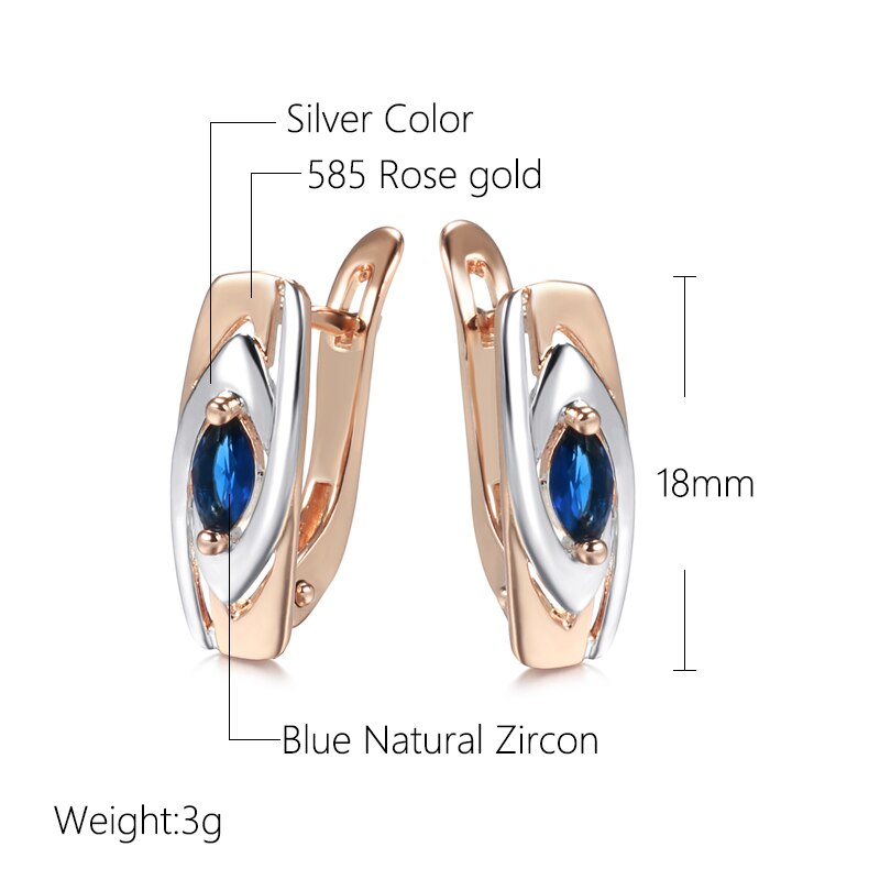585 Gold Jewelry-Personality Pointed Blue Zircon Silver Color Texture 585 Gold Women's Clip Earrings Fashion Party Jewelry Girl's Sexy Earrings