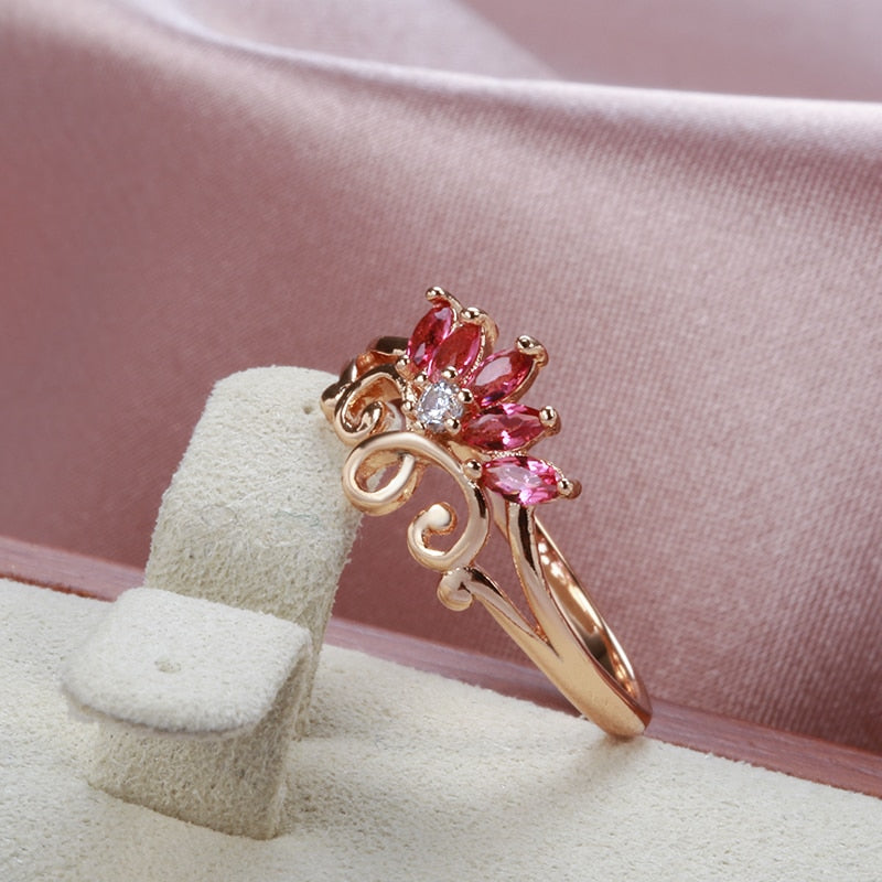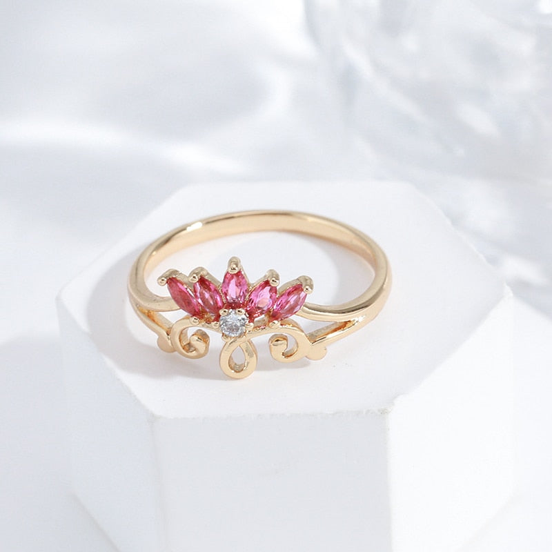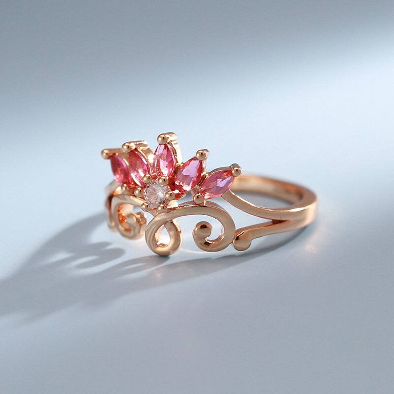 585 Gold Jewelry-Personality Texture Pink Zircon Girls Student Crown Rings Korean Golden Fashion Jewelry Party Daily Unusual Ring Accessories