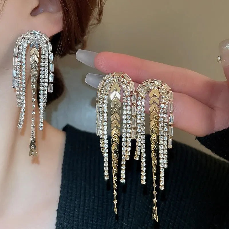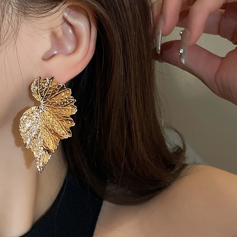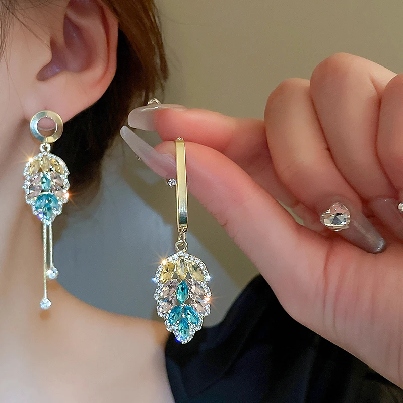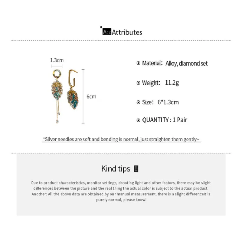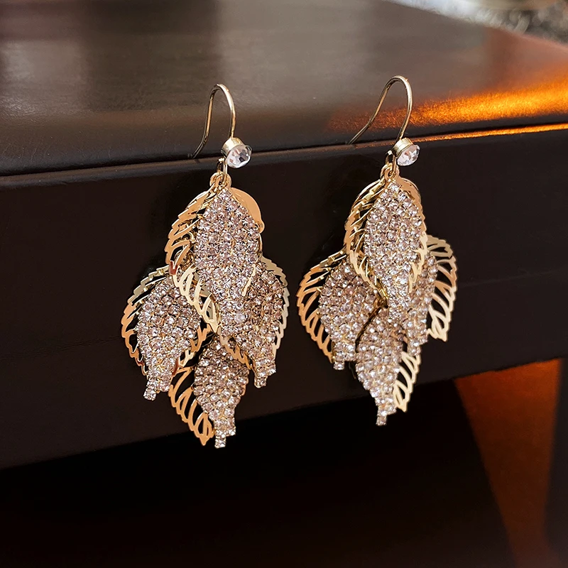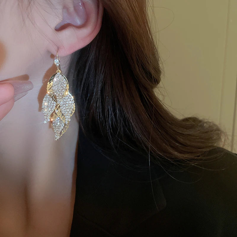 Personalized Design Leaf Earrings For Women Metal Rhinestone Drop Earrings Irregular Long Tassel Earrings Bohemian Jewelry