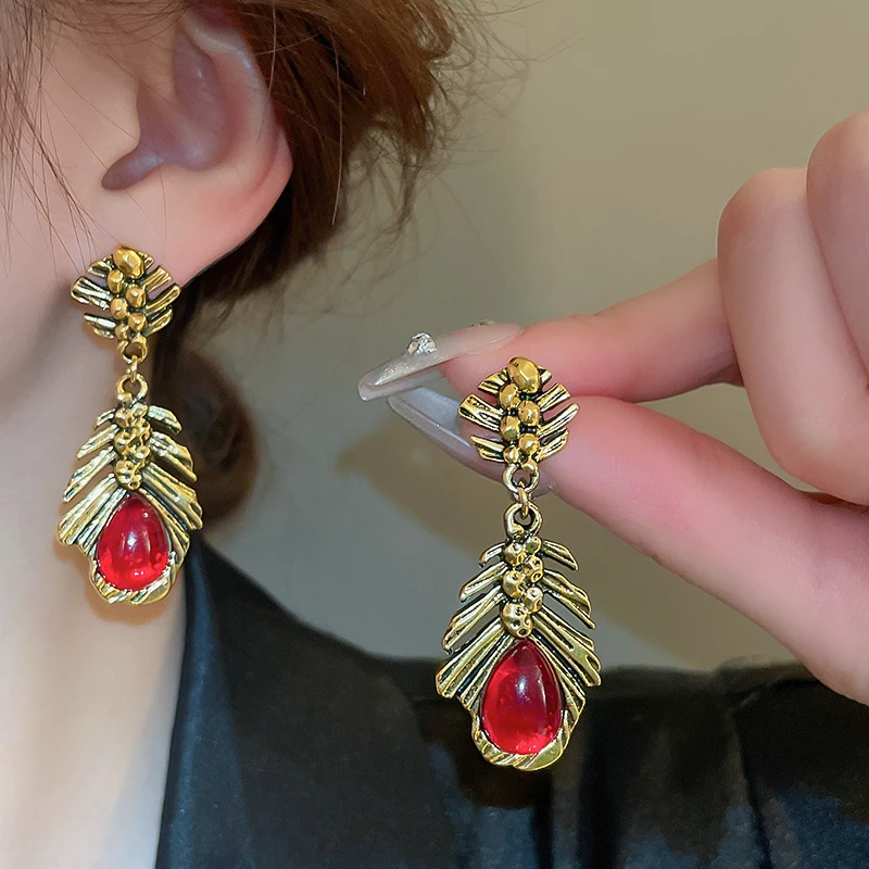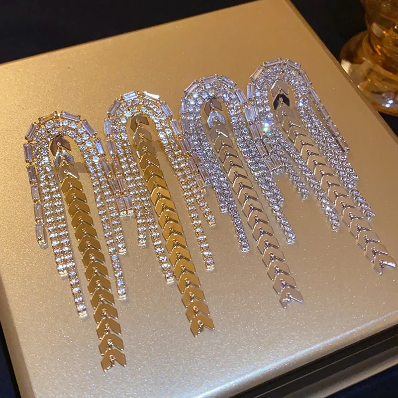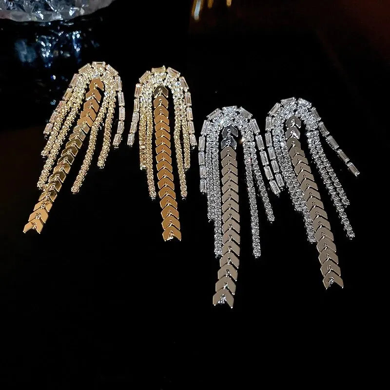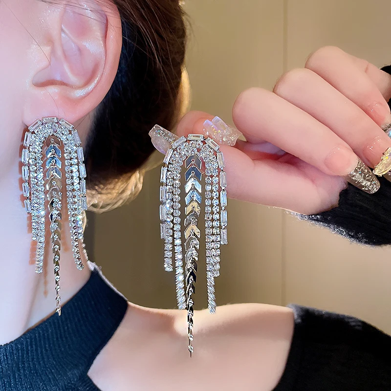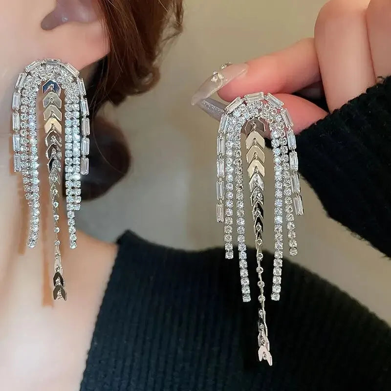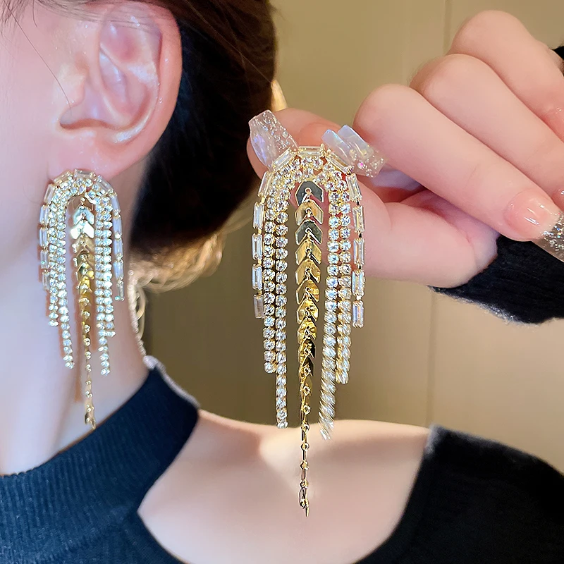 Personalized Design Leaf Earrings For Women Metal Rhinestone Drop Earrings Irregular Long Tassel Earrings Bohemian Jewelry