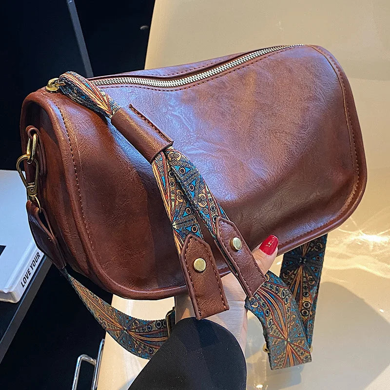 Portable Simple Casual Pillow Bag Popular Fashion Wide Shoulder Strap Crossbody Bags Retro Soft Leather Commute Storage Satchel