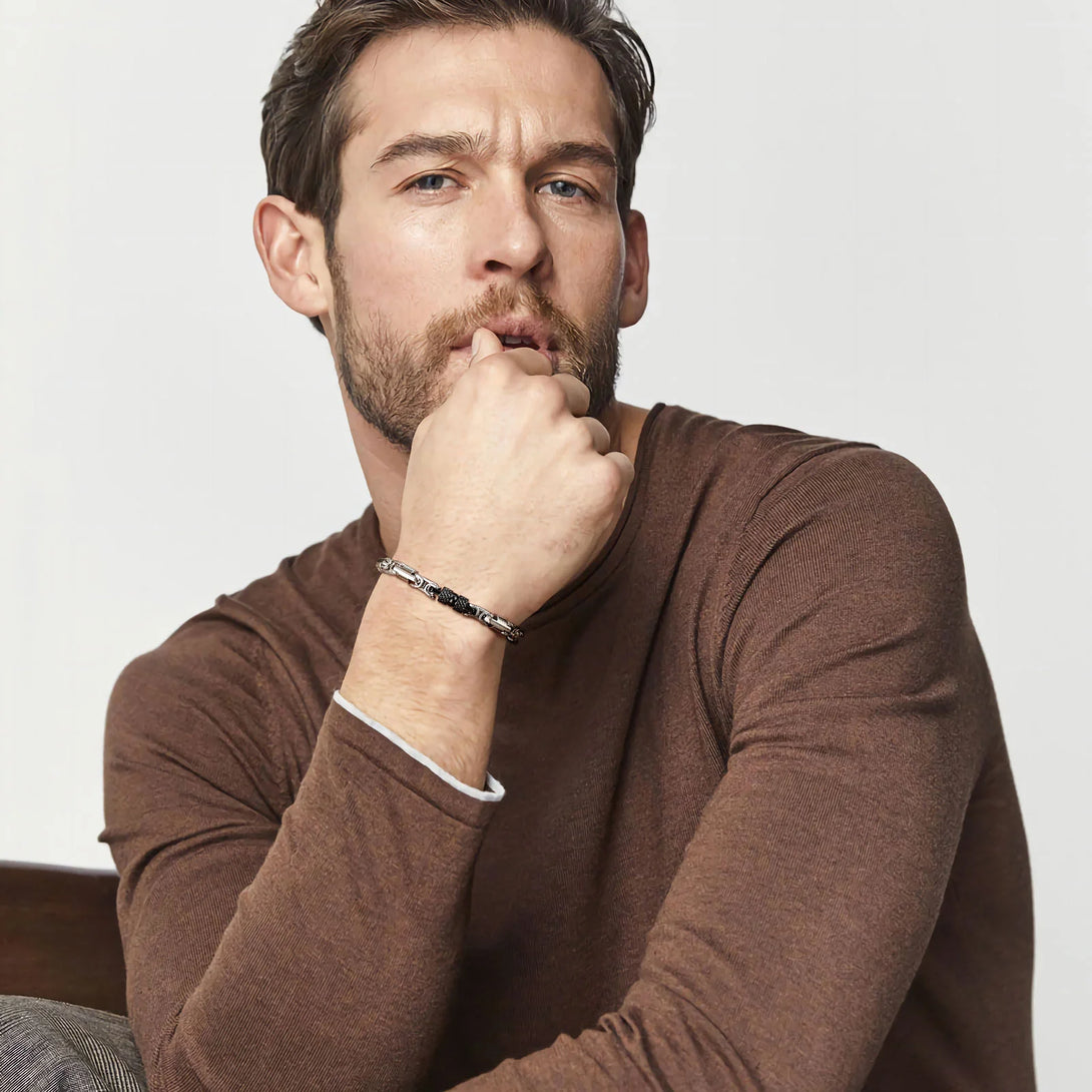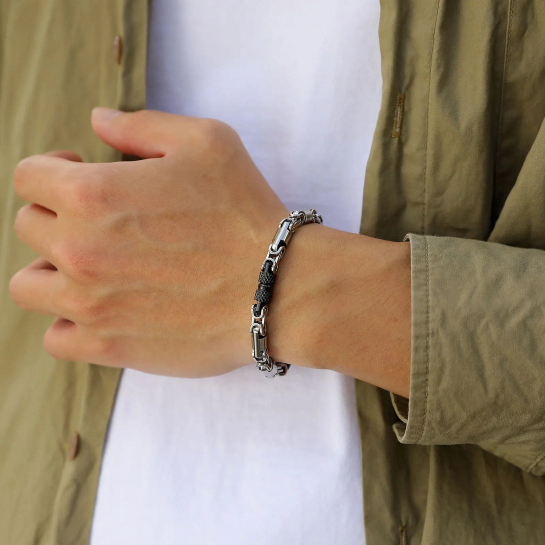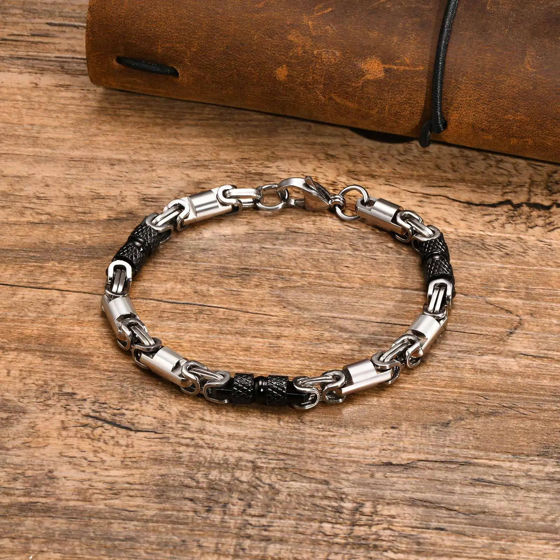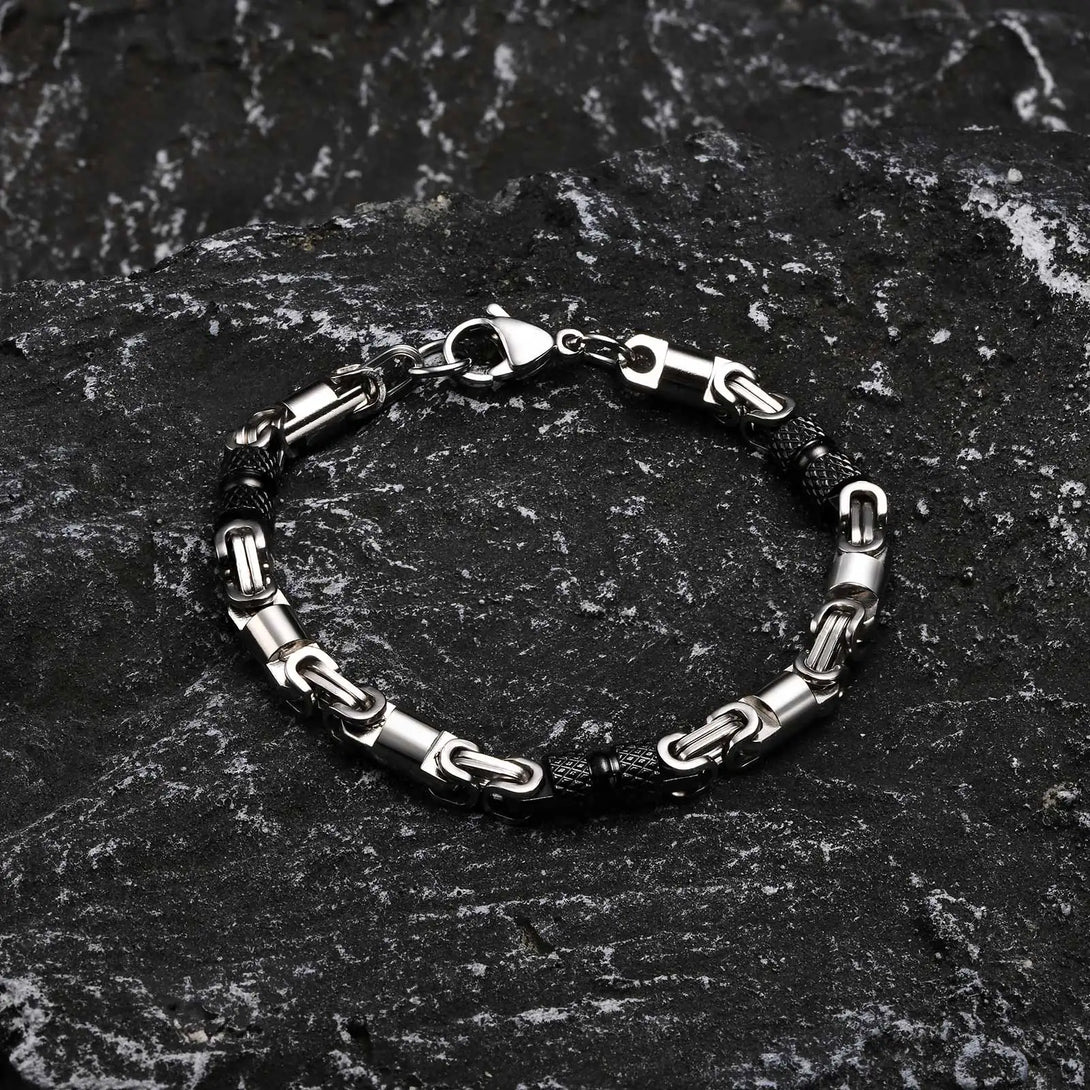 Punk Byzantine Bracelets for Men Boys,Black Silver Color Stainless Steel Chain Wristband,Handmade Jewelry