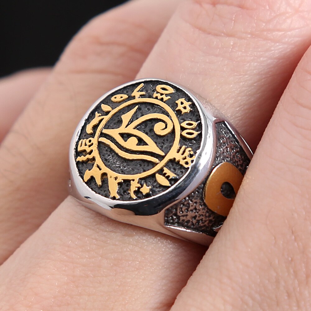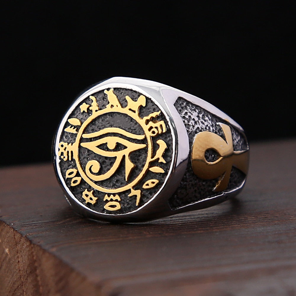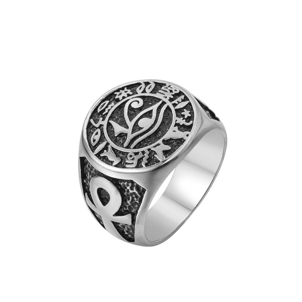 Vikings Jewelry-Punk Vintage Egyptian Eye of Horus Ring For Men Boy Stainless Steel Mysterious Ancient Egypt Symbol Rings Fashion Amulet Jewelry
