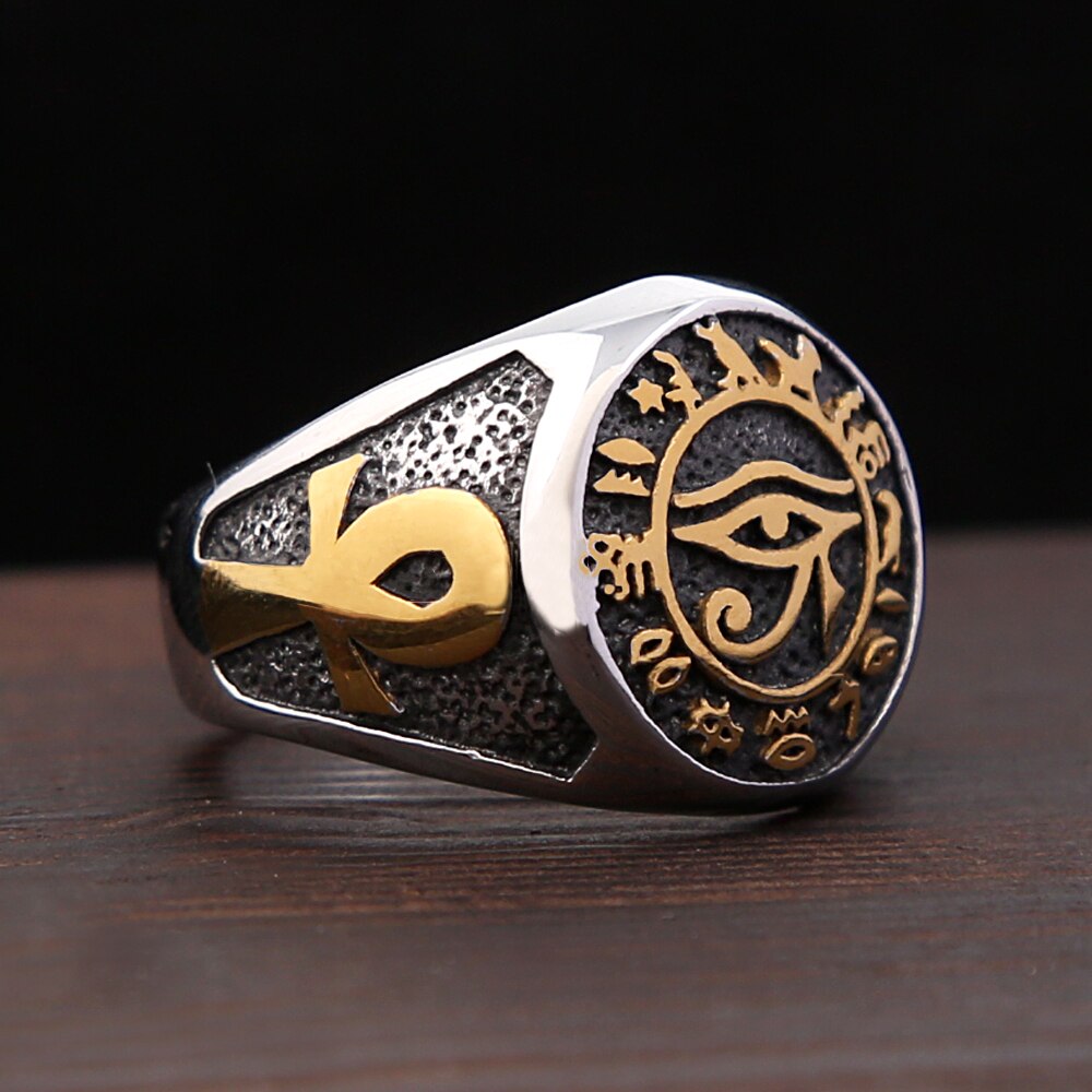 Name: Punk Vintage Egyptian Eye of Horus Ring For Men Boy Stainless Steel Mysterious Ancient Egypt Symbol Rings Fashion Amulet Jewelry