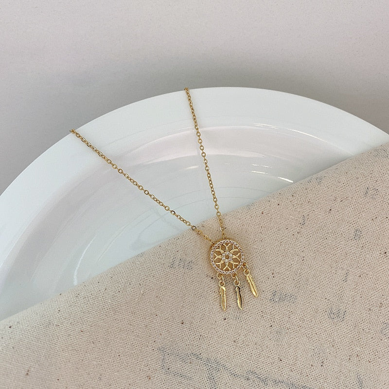 585 Gold Jewelry-Stainless Steel Purple Gold Color Gem Catcher Necklace Exaggerated Personality Network Red Clavicle Chain Necklace