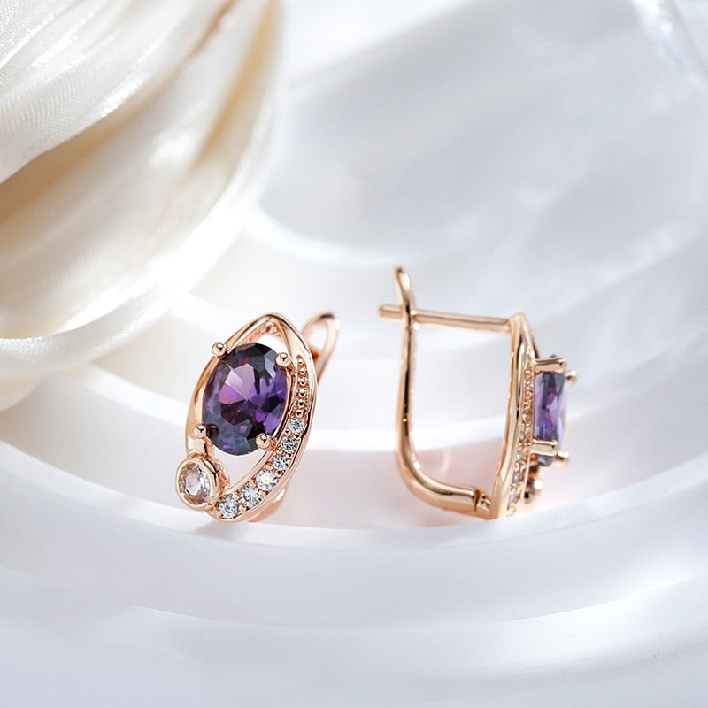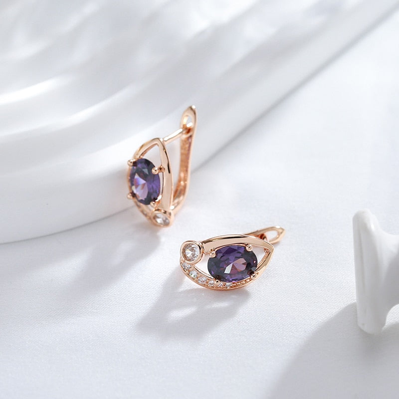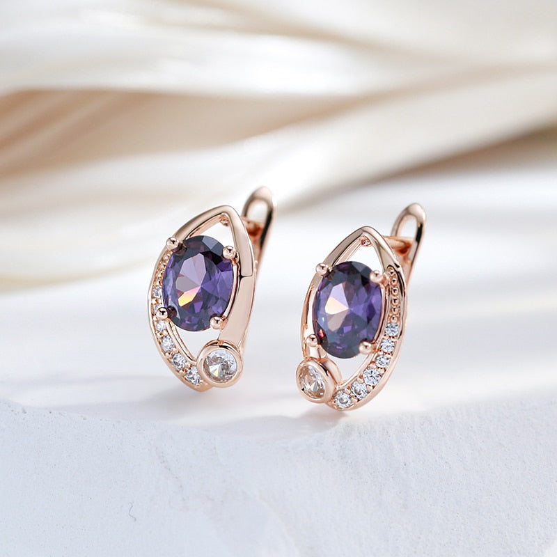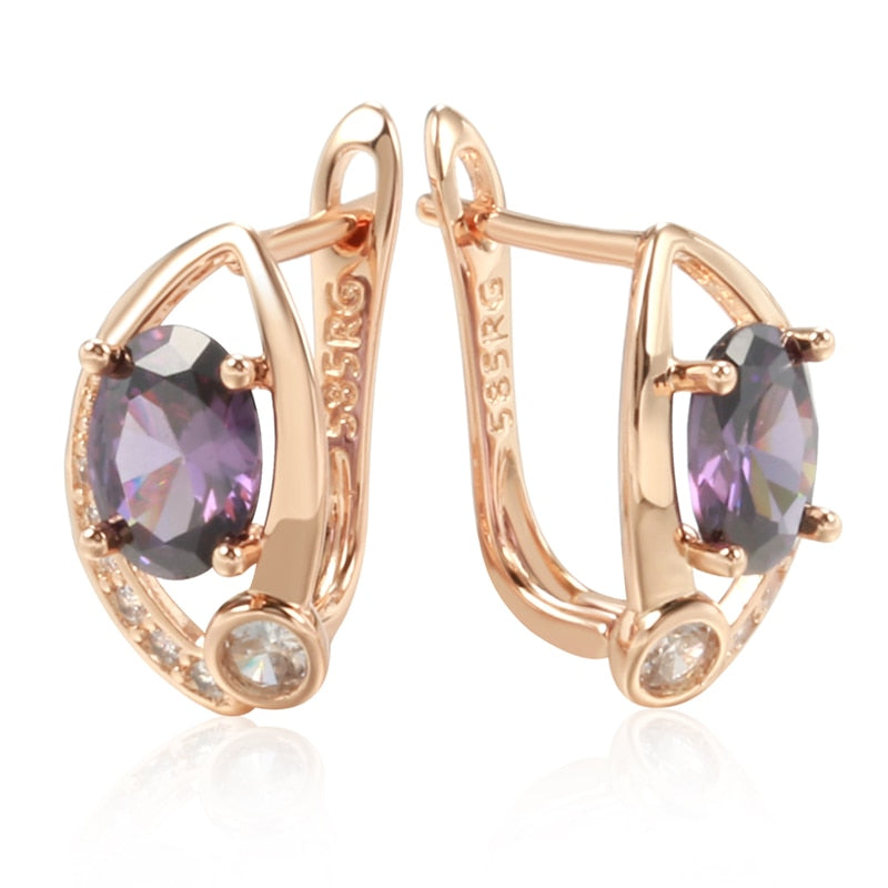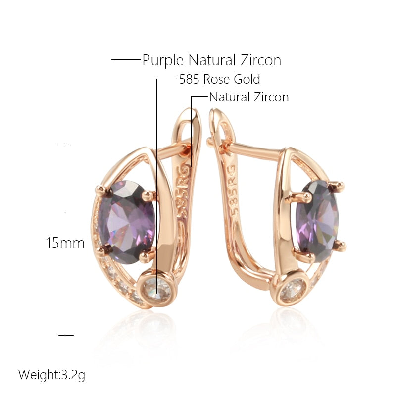 585 Gold Jewelry-Purple Zircon 585 Gold Color Oval Shape Geometric Earrings for Women Sparkling Party Jewelry Trendy Match Accessories