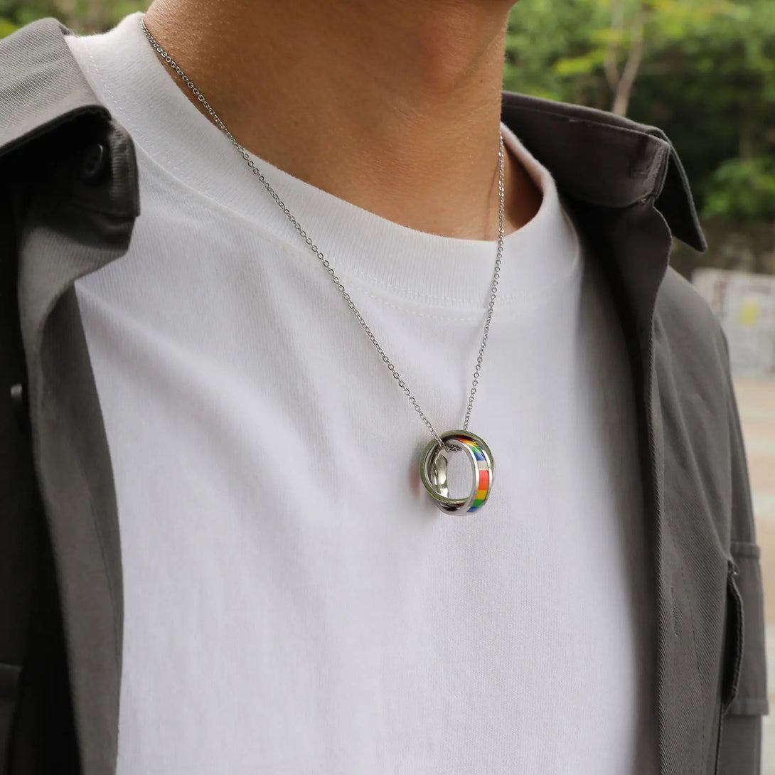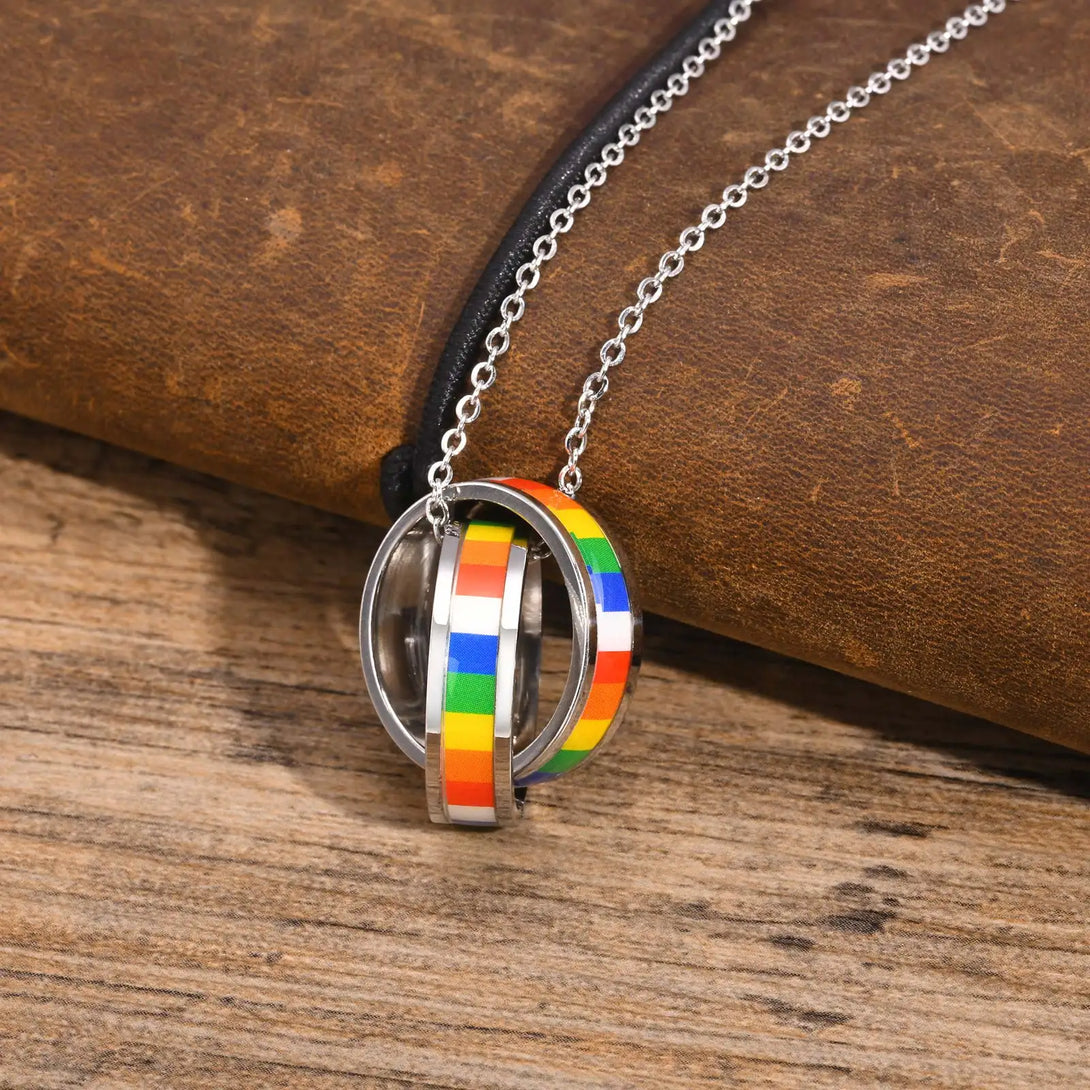 Rainbow Two Circle Pendant Necklaces for Women Men,LGBTQ Pride Necklaces Jewelry,Unisex Jewelry