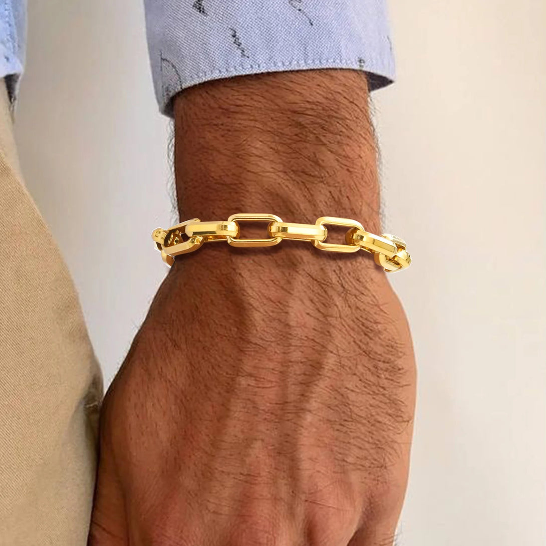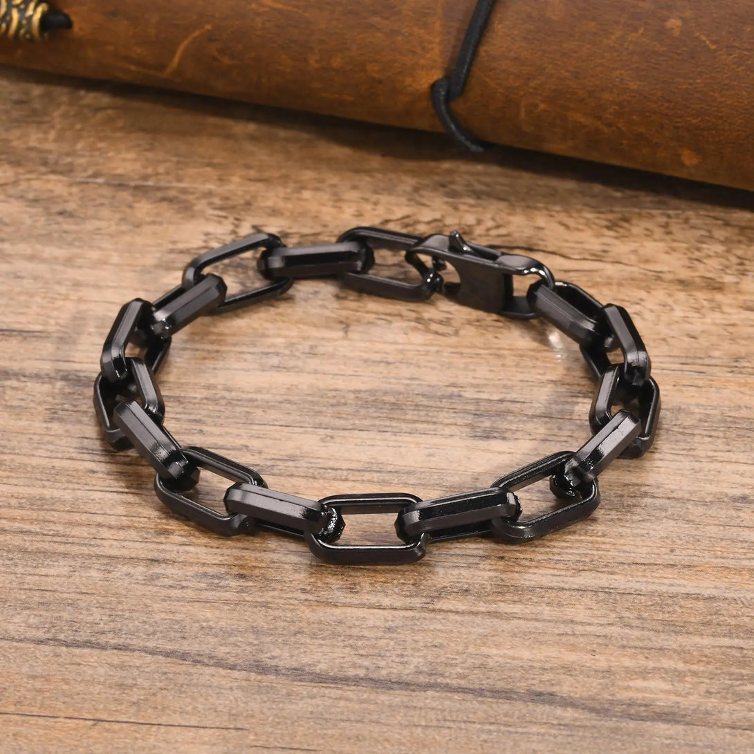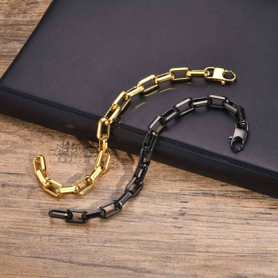 Rectangle Chain Bracelets for Men Boys,Gold Black Color Stainless Steel Wristband,Punk Rock Jewelry Gift for Him