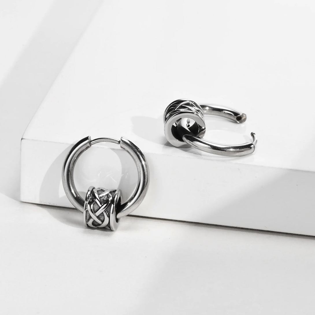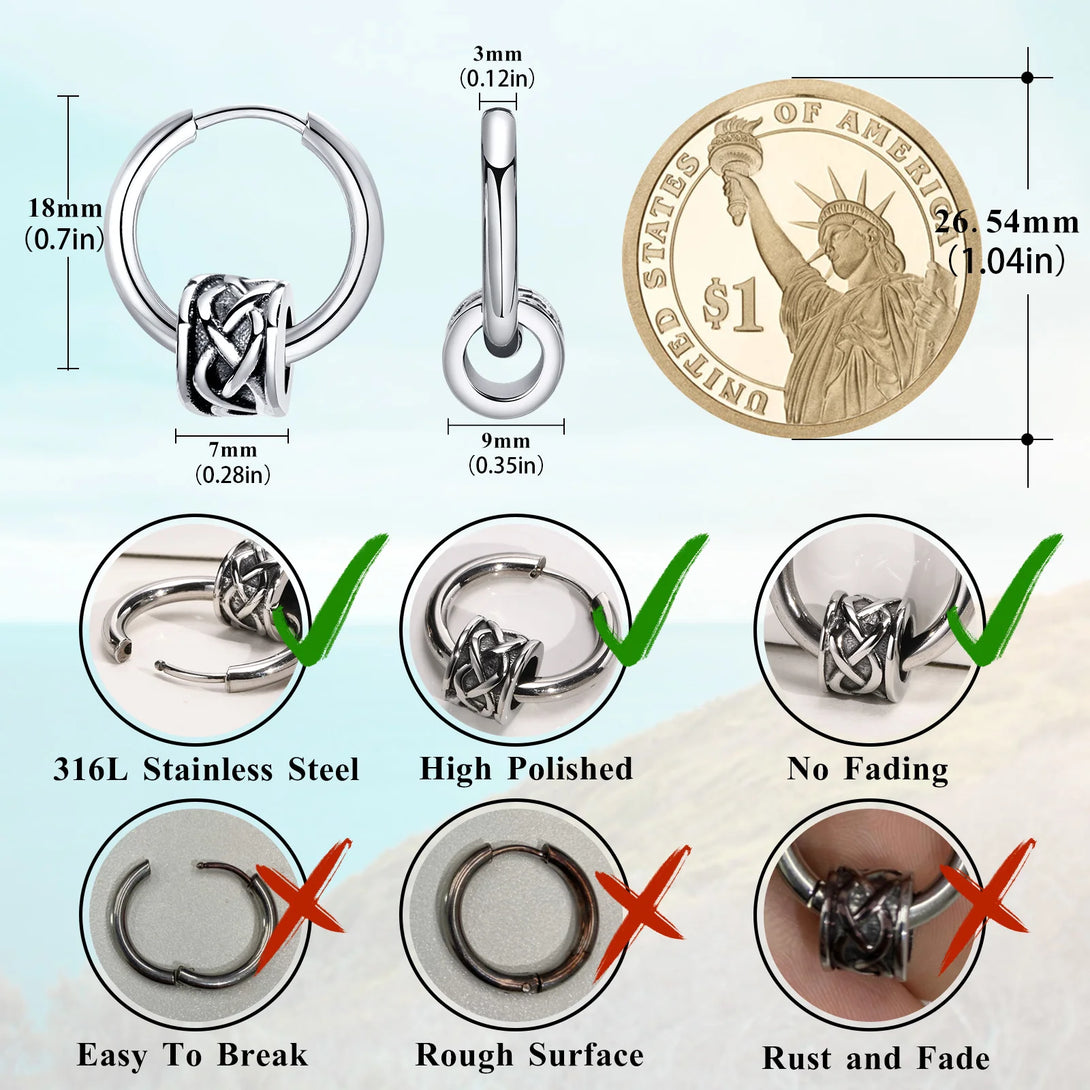 Retro Celtic Knot Tube Hoop Earrings for Men, Waterproof Stainless Steel Small Hoop Huggies Viking Jewelry