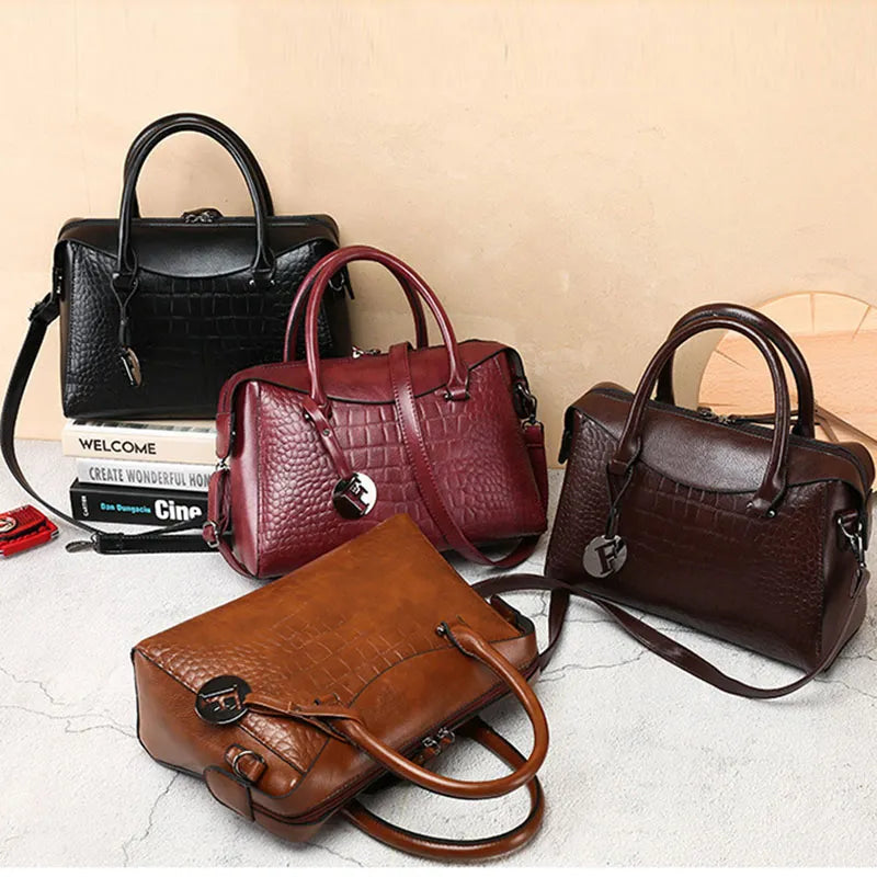 Retro Crossbody Bags for Women Fashion Luxury Portable PU Crocodile Pattern Boston Handbag