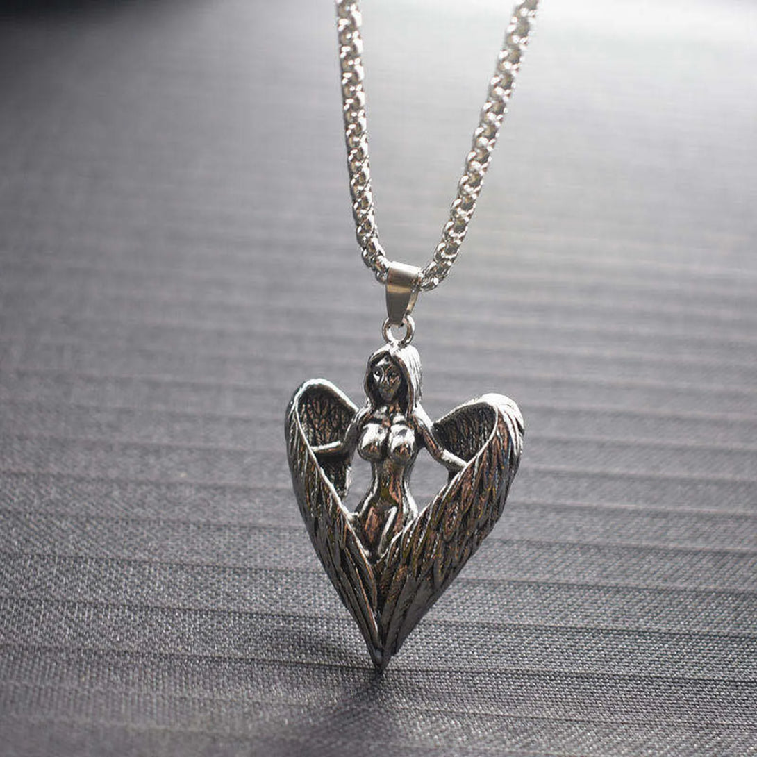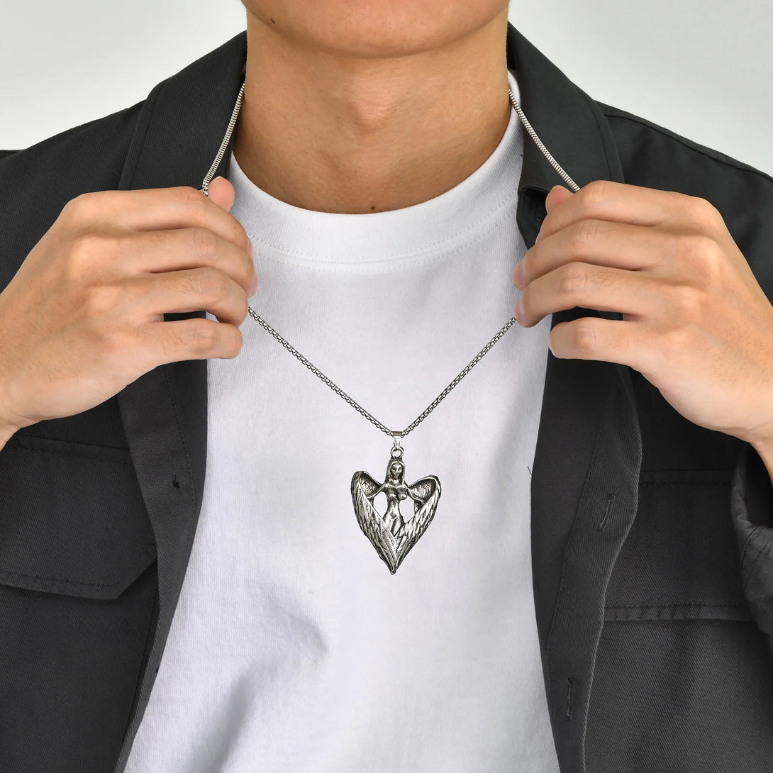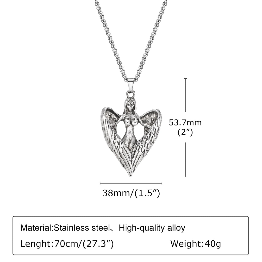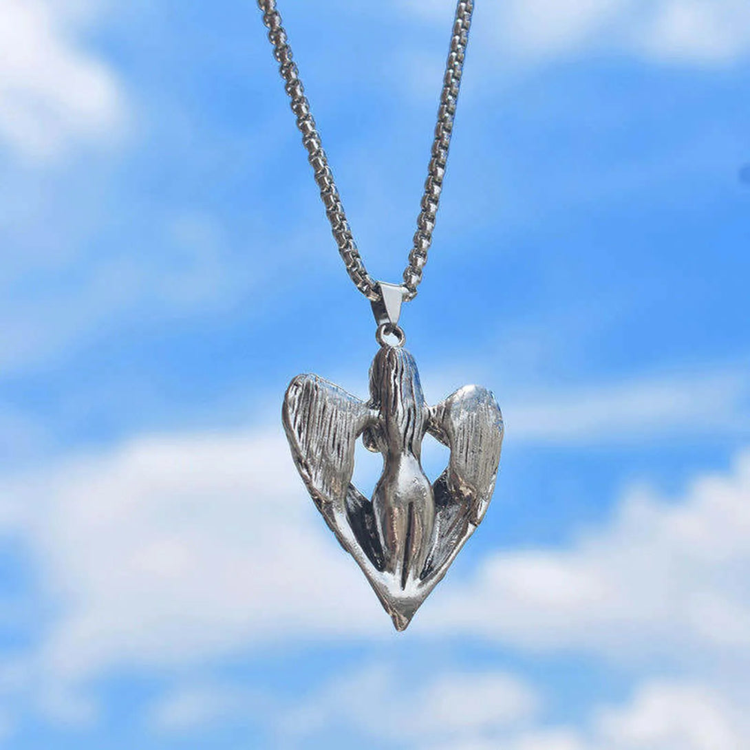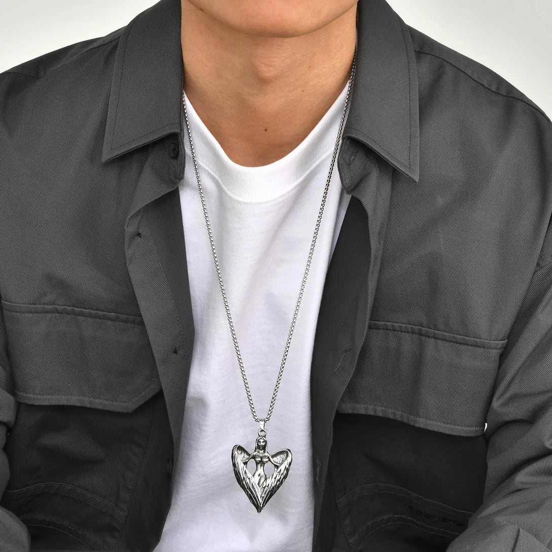 Retro Hug Angel Necklaces for Men, Love Heart Pendant Collar with Box Chain