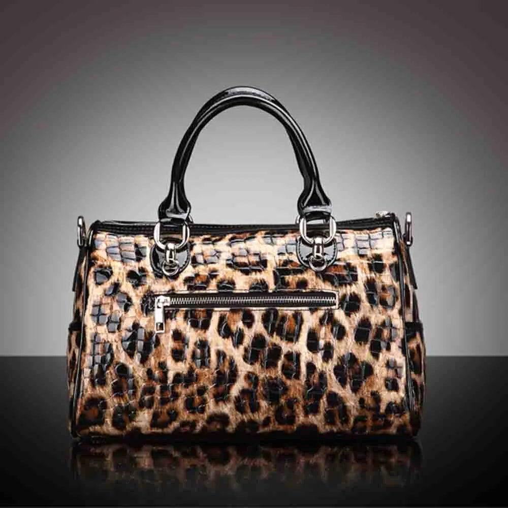 Retro Leopard Print Women Bagf Genuine Leather Luxury Shoulder Handbags and Purses Large Boston Tote Winter New