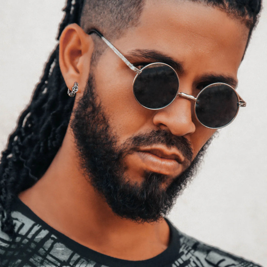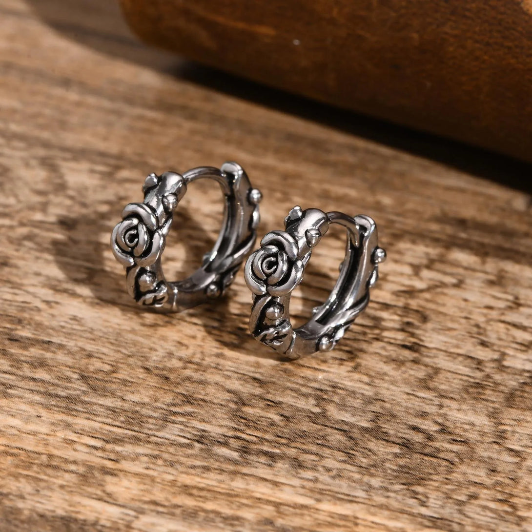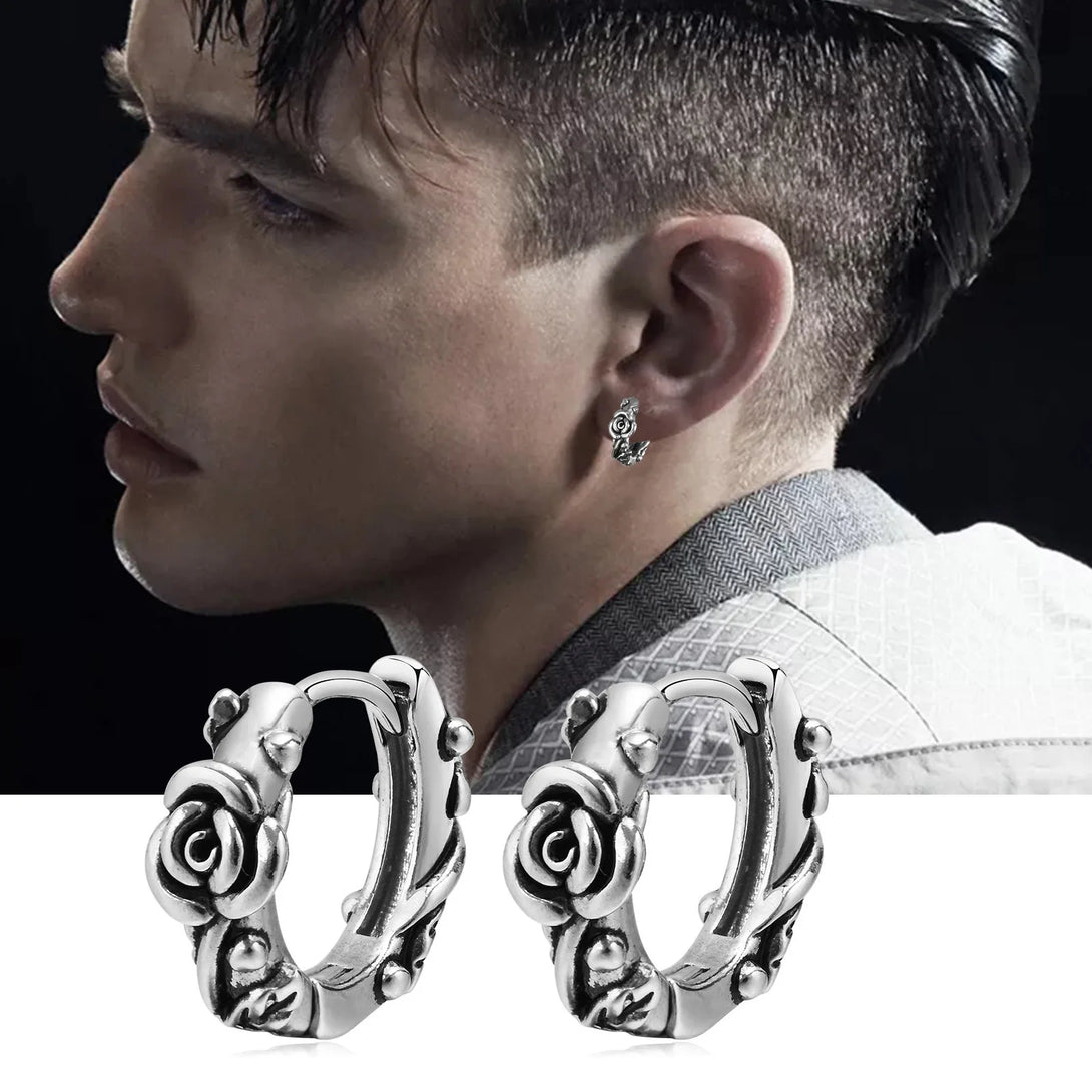 Retro Rose Hoop Earrings for Men, Waterproof Stainless Steel Stylish Flower Huggies Ear Jewelry, Gifts for Him