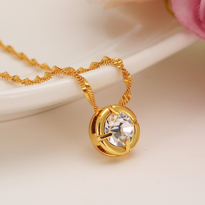 Afraic Jewelry-rhinestone Crystal pendant gold Necklace CZ Stone Greek Key Necklace Female Bijoux Jewelry Gifts For Men Women girls diy charms