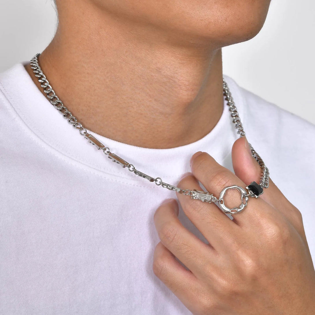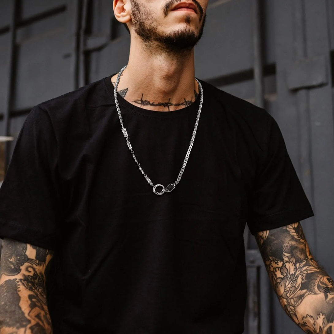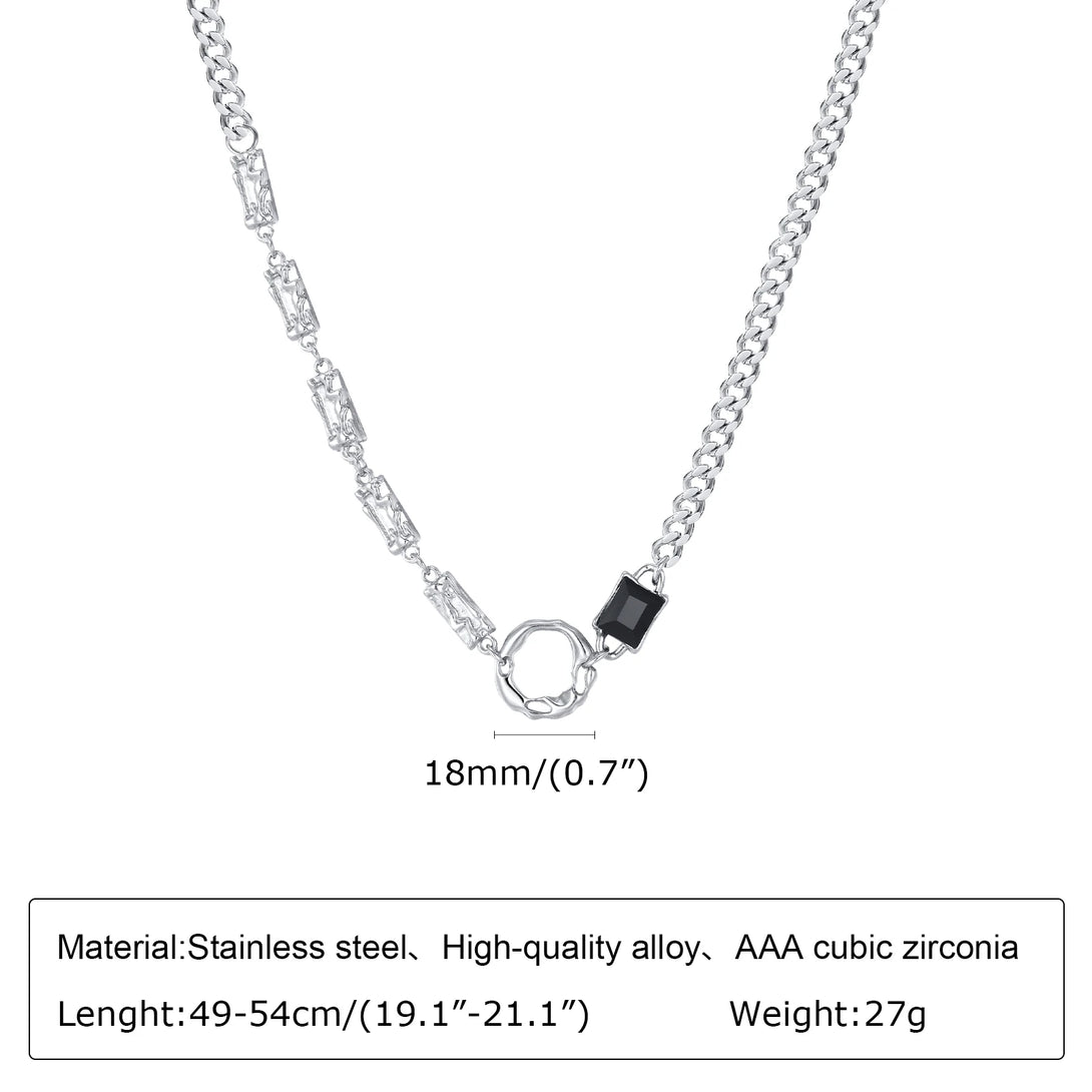 Rhombus Cuban Chain Necklaces,Inlay CZ Stone Rhinestone Zircon Collar with Circle Charm Pendant